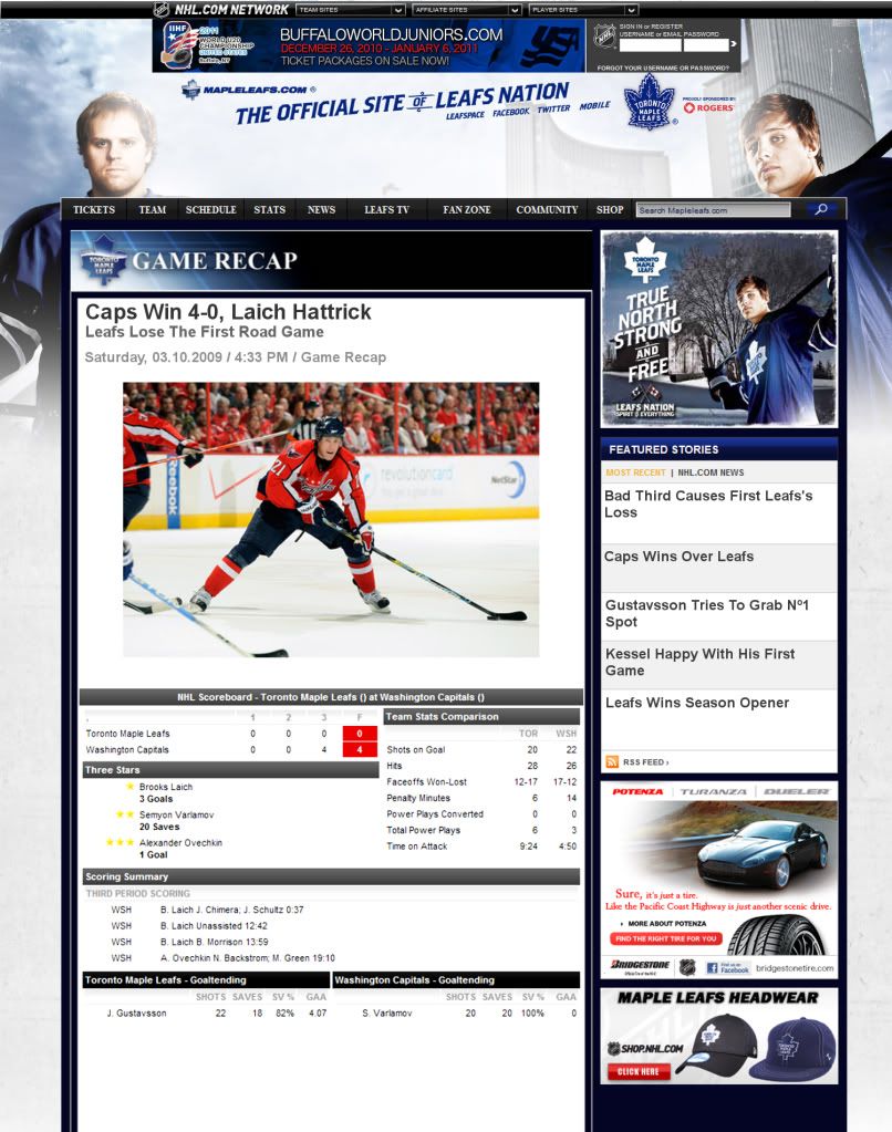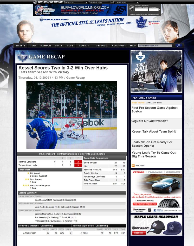 NHL Scoreboard - Pittsburgh Penguins (4-1-0) at Toronto Maple Leafs (2-2-0)