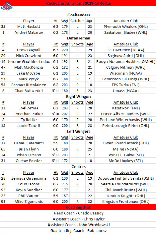 The 21-year old defenseman split last season between the Americans and Sabres, appearing in 19 games with the Sabres in 2012-13. The former first round pick is the last defensive cut in camp, a decision made difficult due to his stellar play in the pre-season.