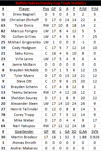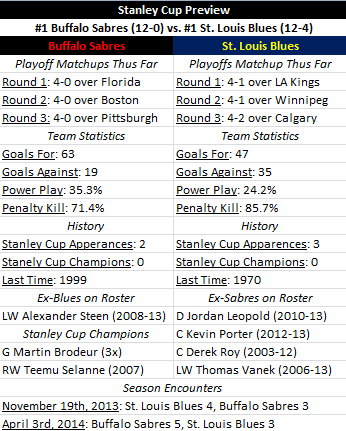 Yet, they're making history. They've swept through the playoffs, and even got out of the series against the Boston Bruins with no injuries to speak of. Down 3-2 in game four, it appeared the Bruins could push the Sabres back to Buffalo for game five, until a four goal outburst got them past the Bruins, eight wins away from hoisting lord's Stanley Cup.