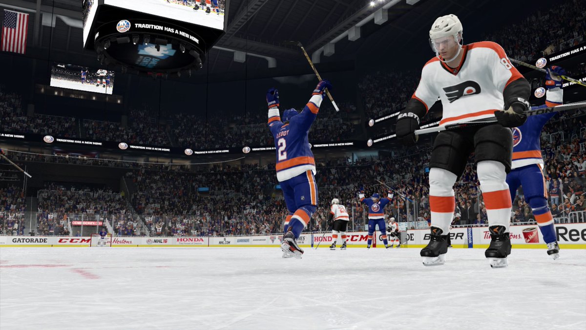 Leddy celebrates his late goal to give the Isles a 5-3 Win