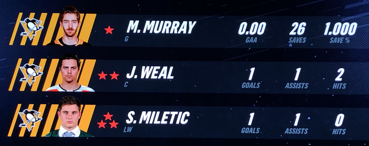 The final period was high intensity action & the penalty box stayed empty. With 12:38 remaining, Filip Zadina crossed the puck to Jacob Trouba who blazed the puck into the back of the net. Trouba’s one-timer goal proved to be the game winner with no further score from either side.