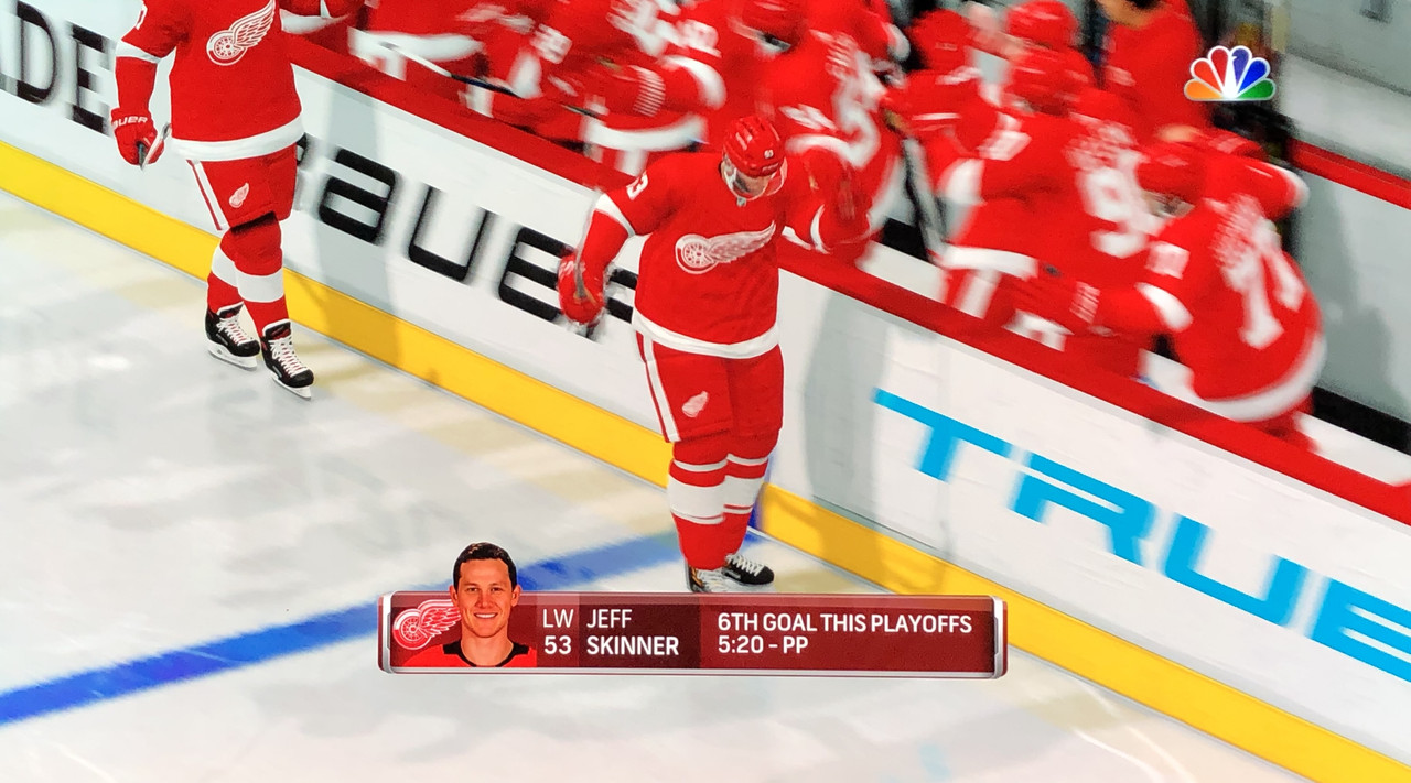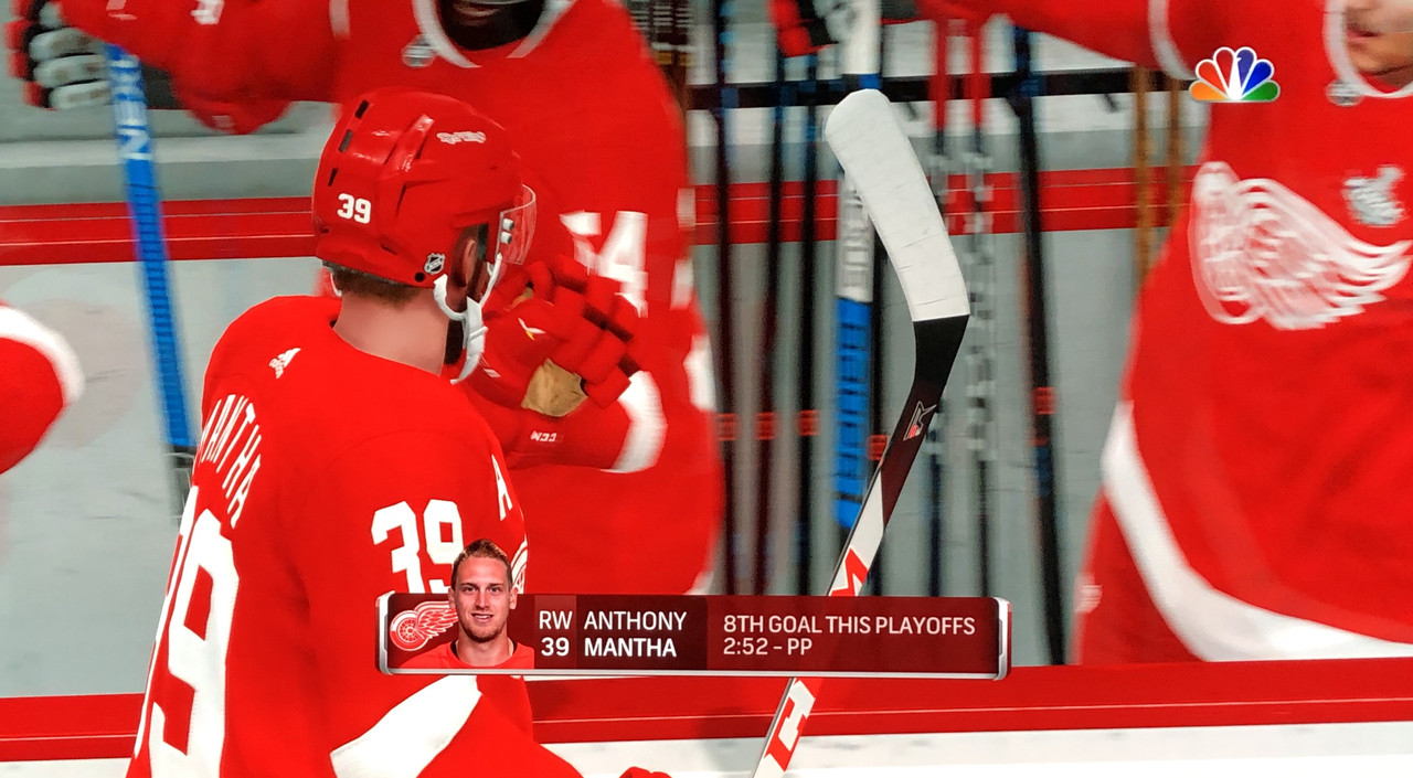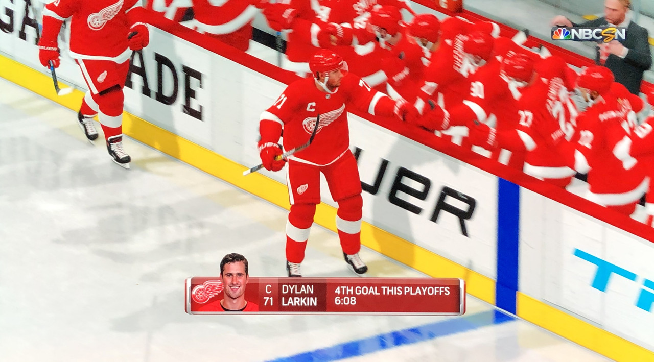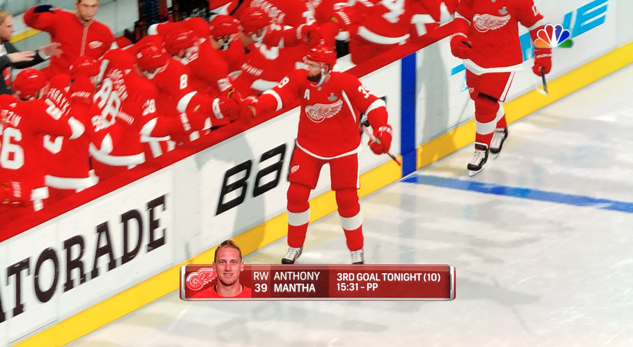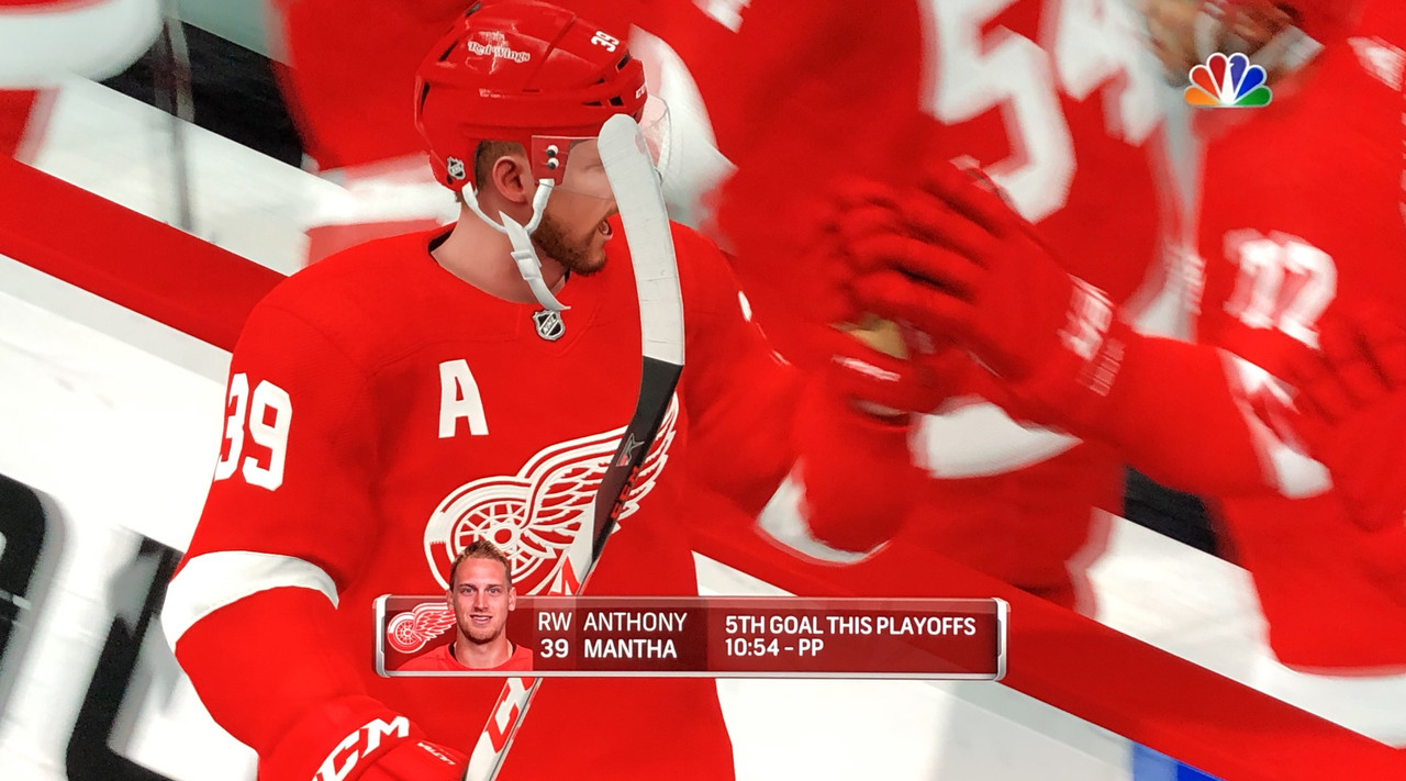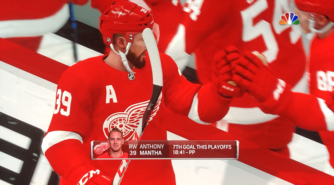 The game was tied moving into the 3rd period at 2-2. In under a minute of resumption of play, Red Wings wingman, Evgeny Svechnikov netted his 2nd goal for the game, to give the visitors the lead. With only another 3 minutes of play later, Anthony Mantha scored his 11th for the playoffs, to propel the Wings further in front by 2 goals.