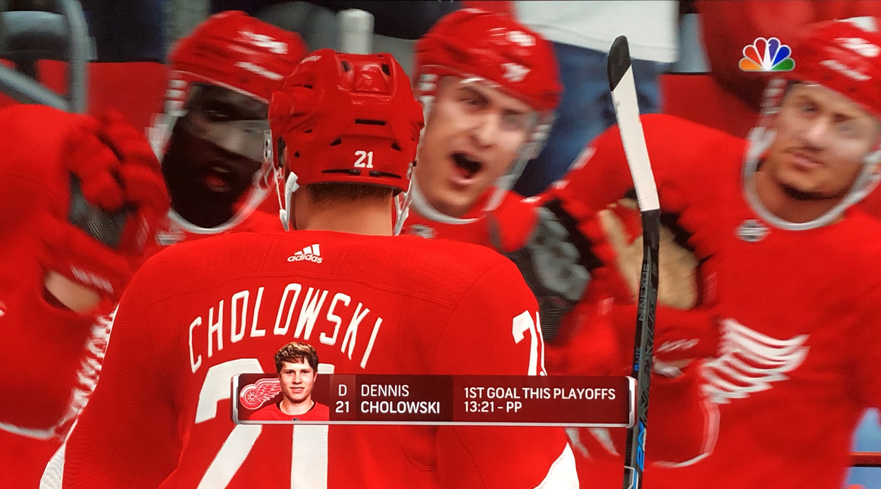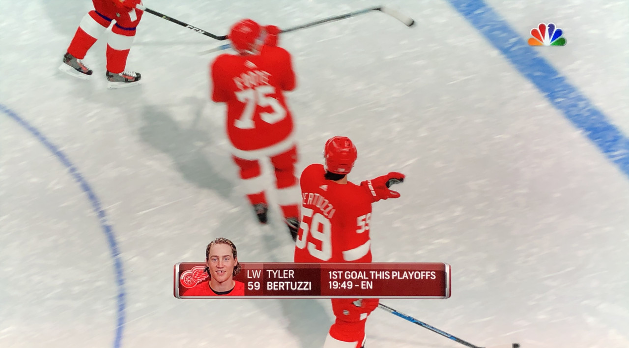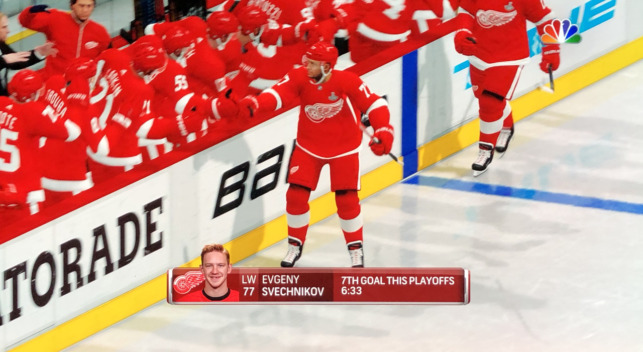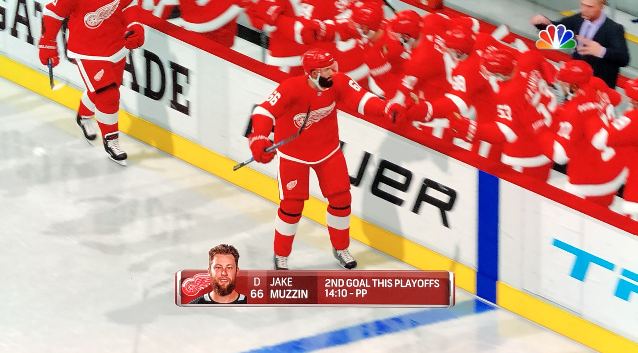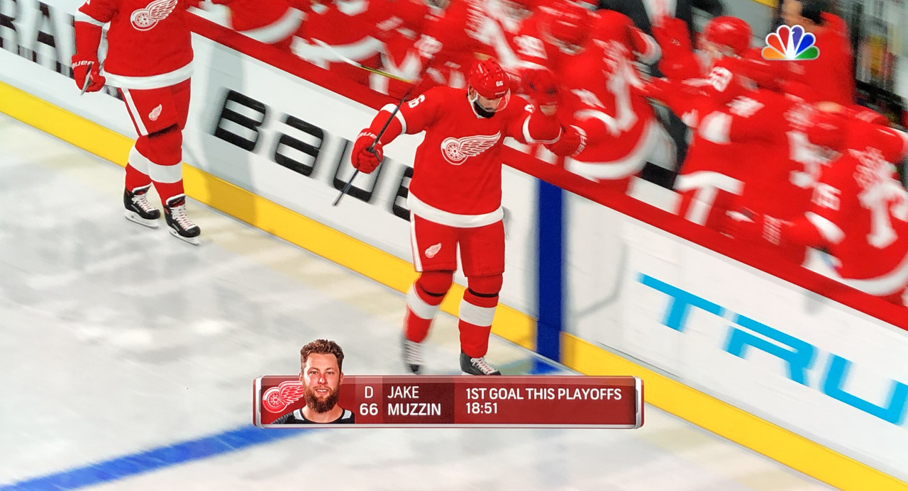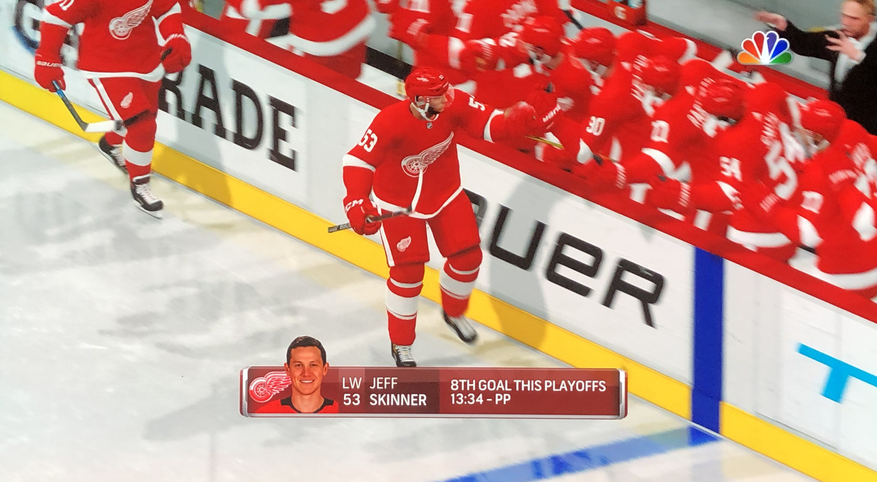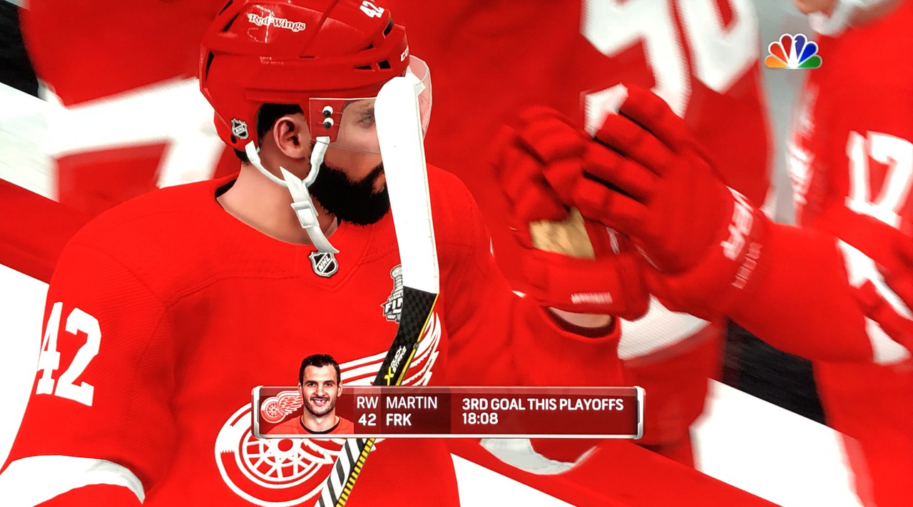 The game was tied moving into the 3rd period at 2-2. In under a minute of resumption of play, Red Wings wingman, Evgeny Svechnikov netted his 2nd goal for the game, to give the visitors the lead. With only another 3 minutes of play later, Anthony Mantha scored his 11th for the playoffs, to propel the Wings further in front by 2 goals.