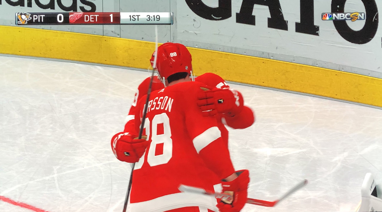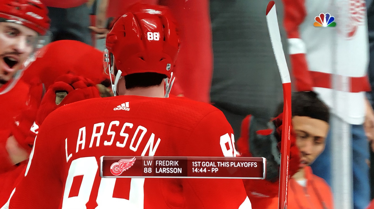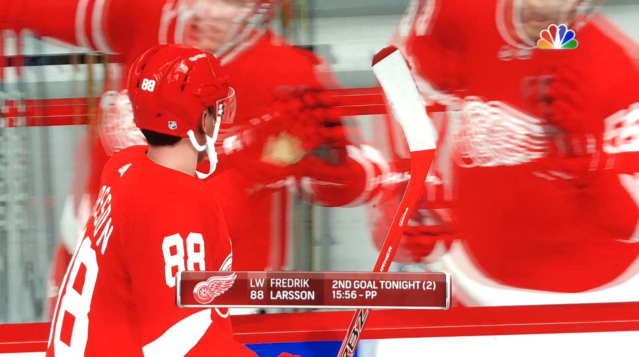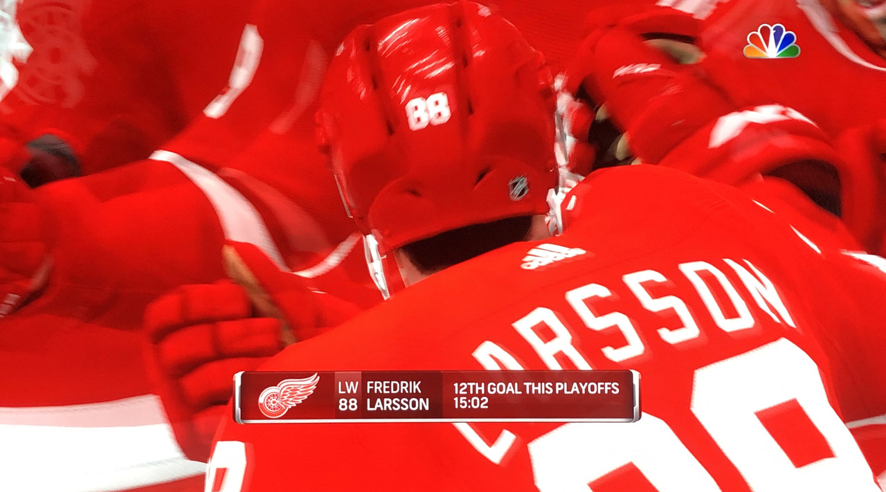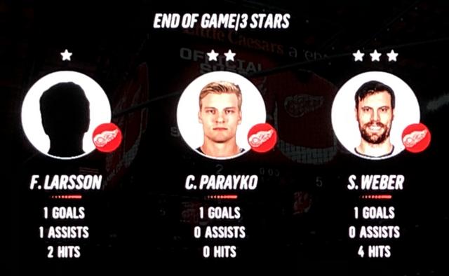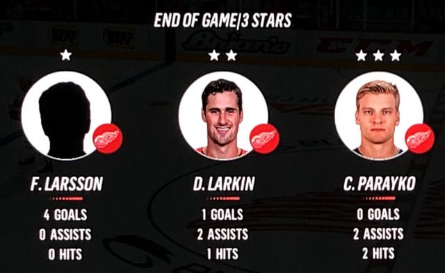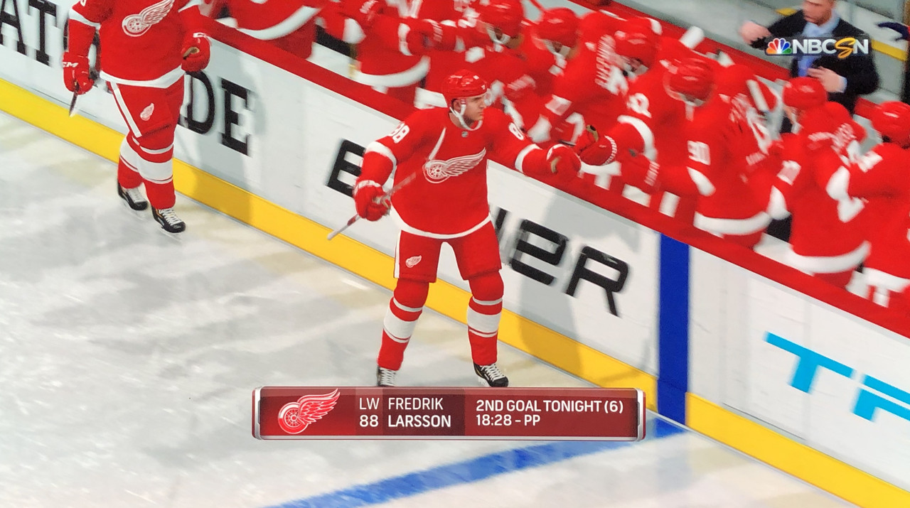 Detroit certainly did not have it easy tonight, although they did draw 1st blood when Fredrik Larsson scored from range in the 1st period.