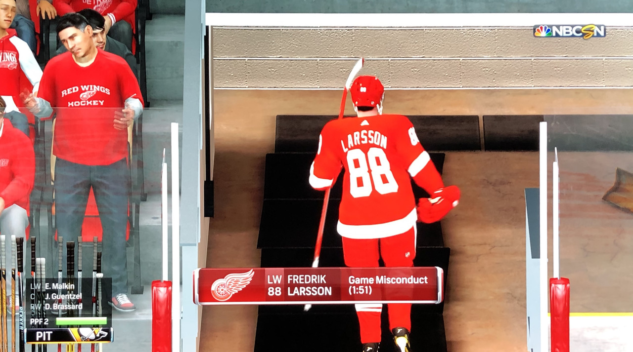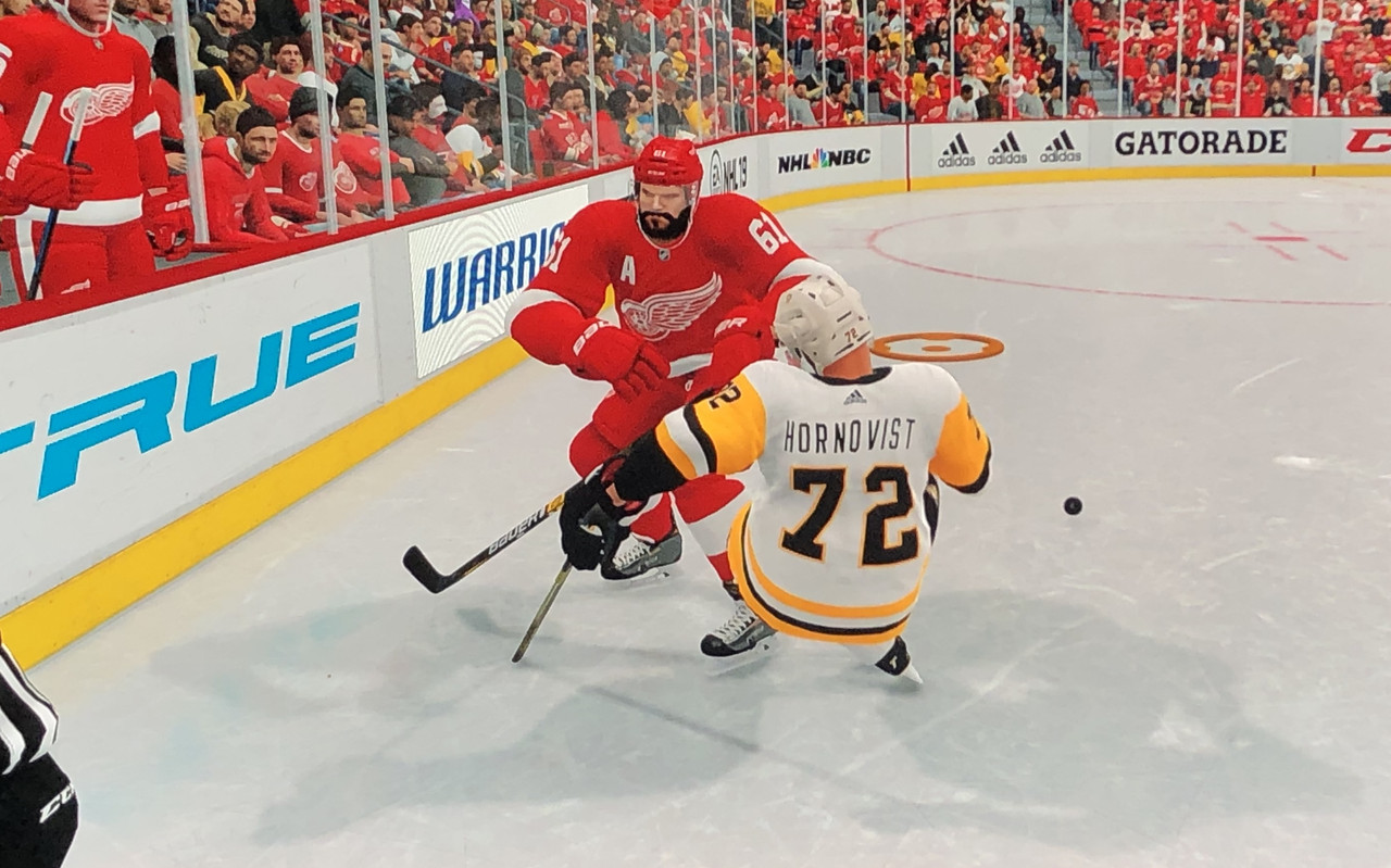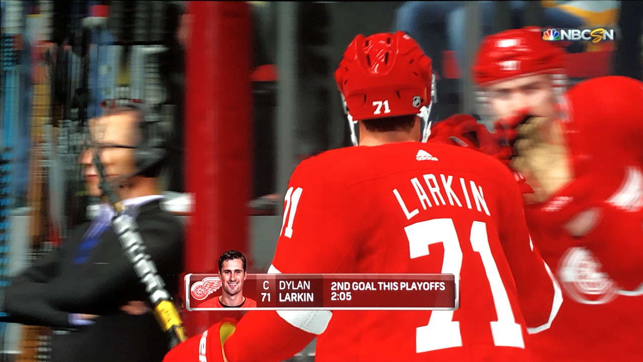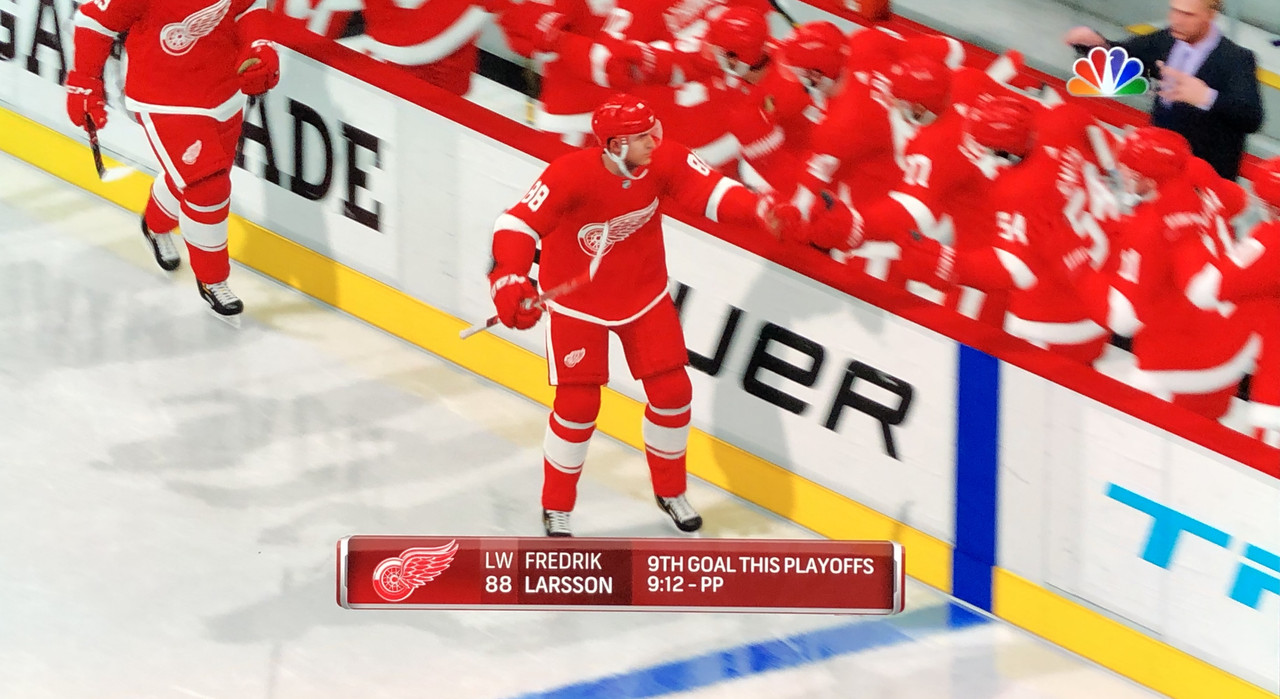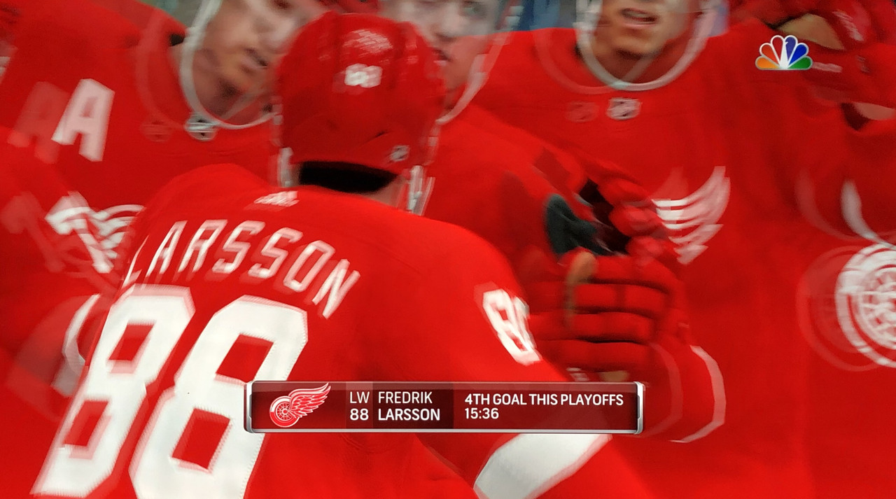 Detroit certainly did not have it easy tonight, although they did draw 1st blood when Fredrik Larsson scored from range in the 1st period.