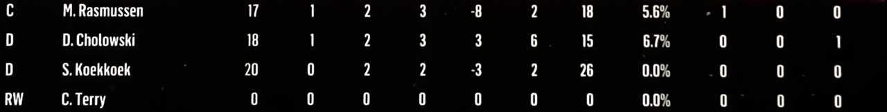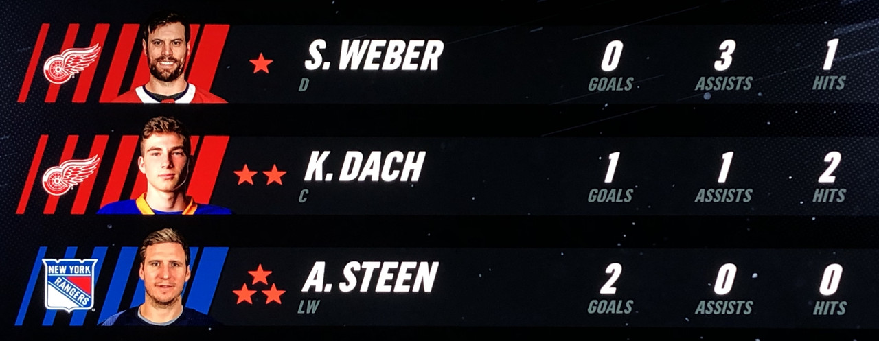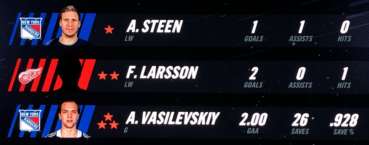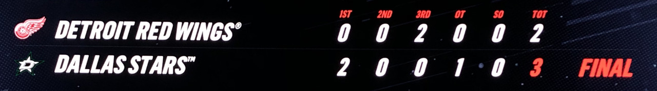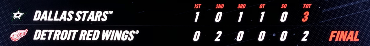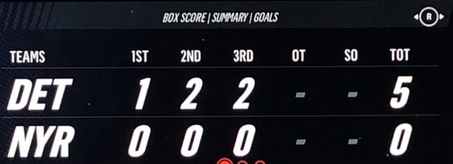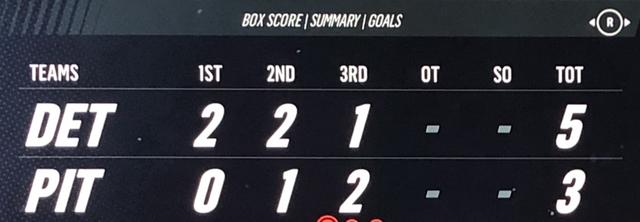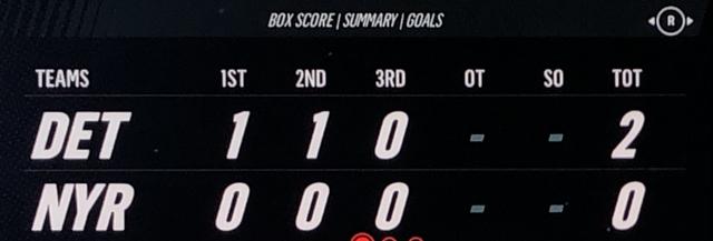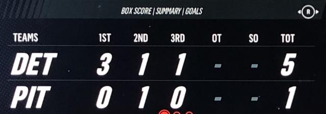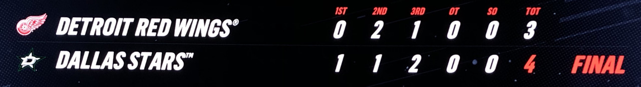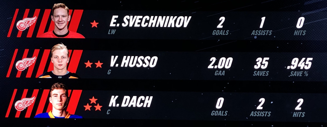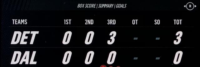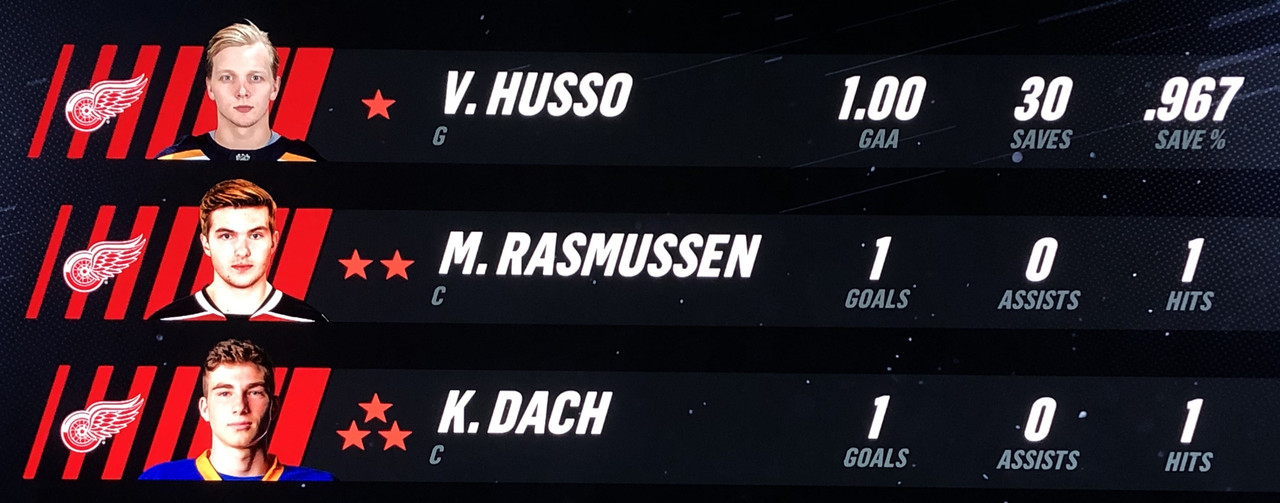 Detroit managed to do their damage during the 1st 2 periods, with Dach scoring in the 1st period, followed by goals from Rasmussen, Frk & Larsson during the 2nd.