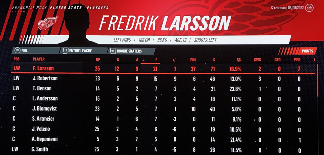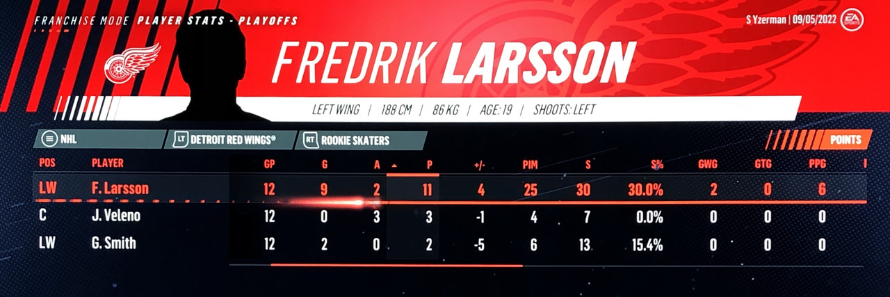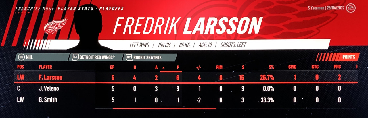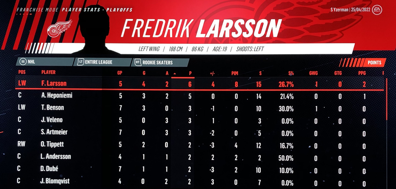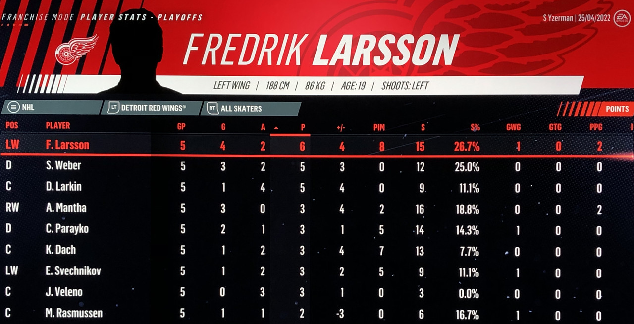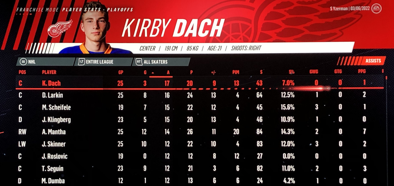 Detroit managed to do their damage during the 1st 2 periods, with Dach scoring in the 1st period, followed by goals from Rasmussen, Frk & Larsson during the 2nd.