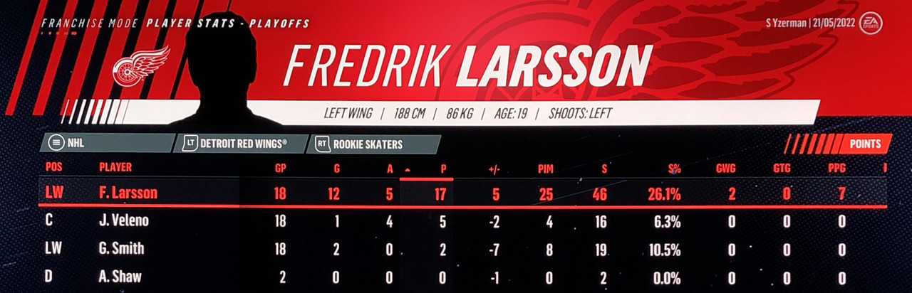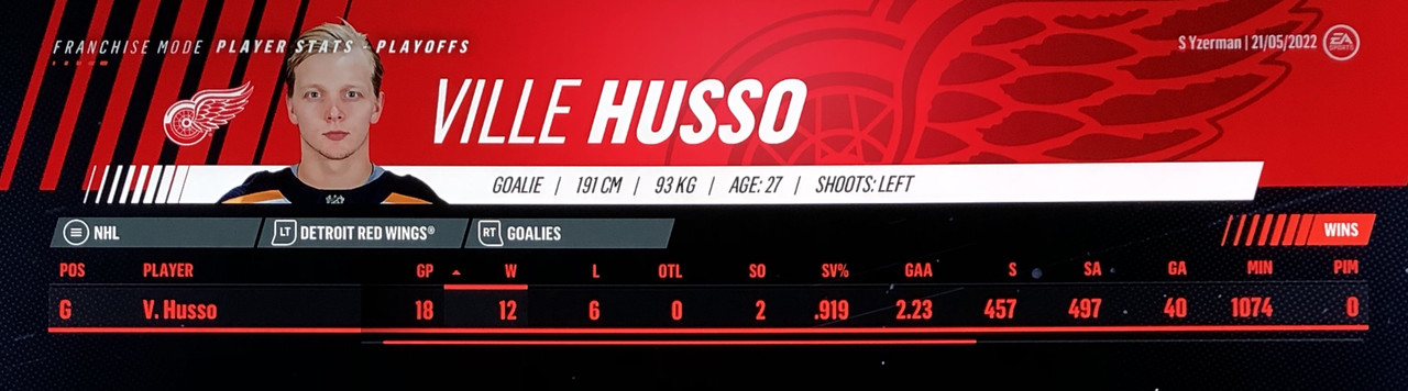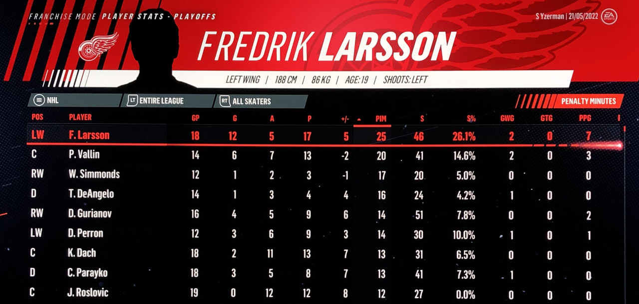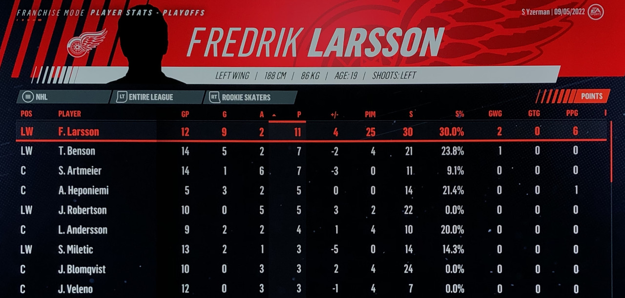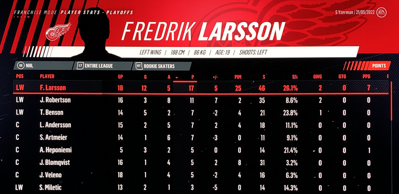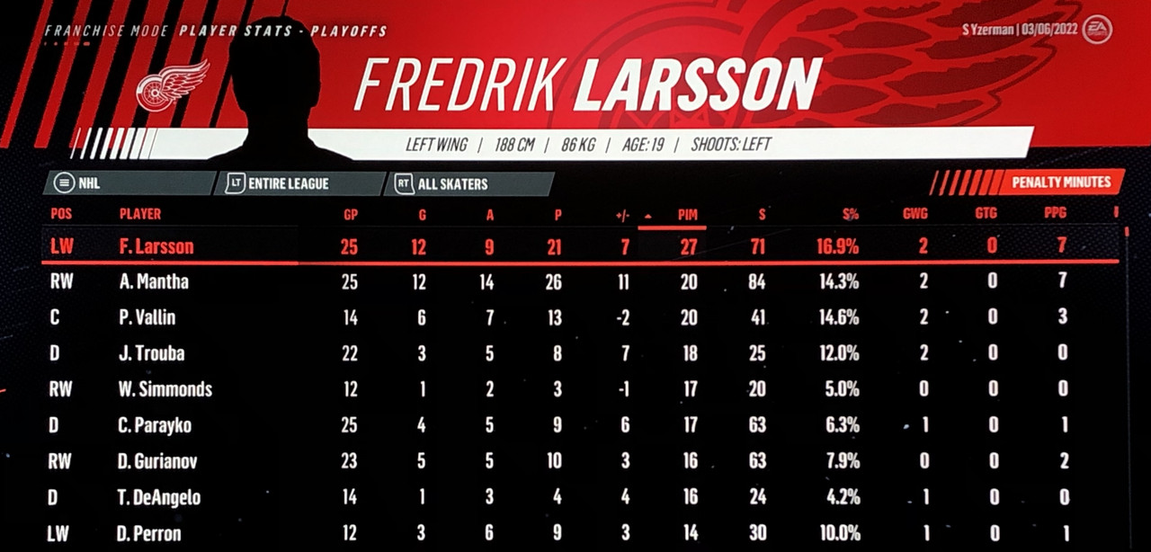 Detroit managed to do their damage during the 1st 2 periods, with Dach scoring in the 1st period, followed by goals from Rasmussen, Frk & Larsson during the 2nd.