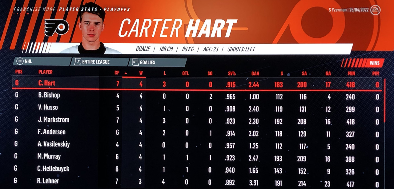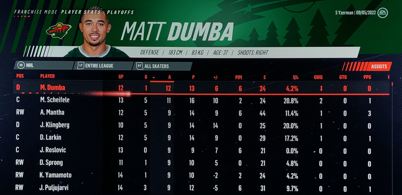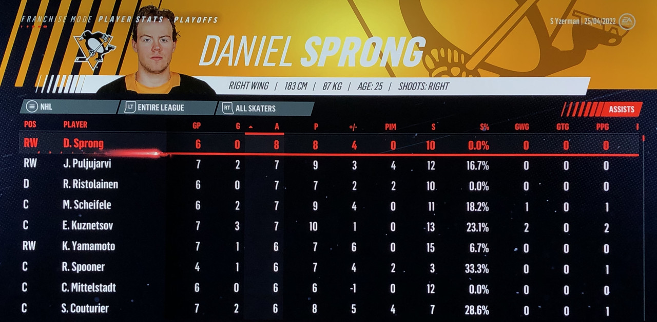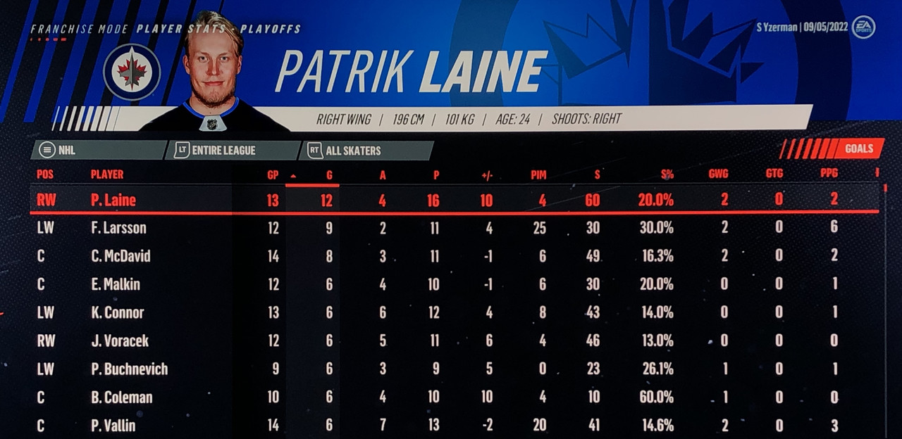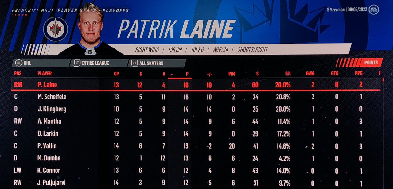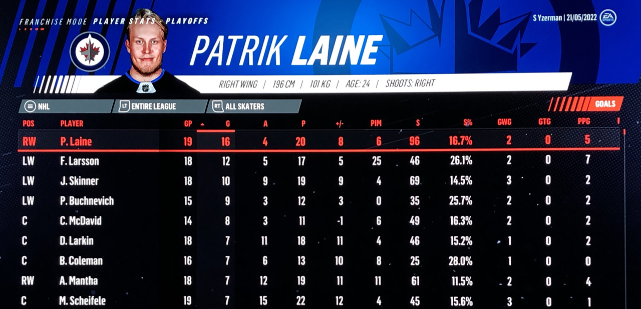 (Honestly this was a great game to play. The scores were locked at 0-0 after 2 periods, both teams had their chances, both with 16 shots on net. Then Trouba scored early in the 3rd to take the lead, but Dallas kept pressing and even in the dying minutes, it looked like they might tie the game – like this game is insufferably ominous for - lol. It wasn’t until Bertuzzi scored his empty netter with 11 seconds left, that the pressure was finally off. It was one of the more enjoyable / high pressure / close games I have played – win or lose. Probably would have cried if I lost :P )