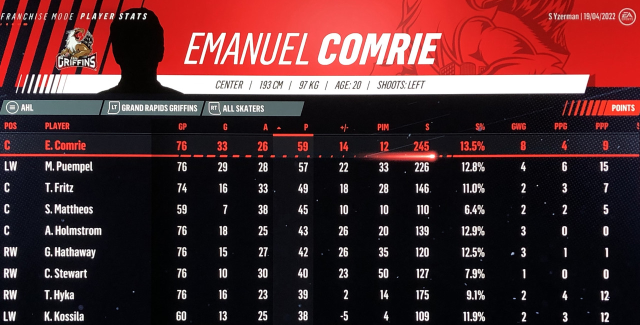 After going 25-5-3 in the 1st 33 games from the 1st update report back in January, the Griffin’s next 43 games through to the completion of the season were much tougher, going 21-18-4 in that period.