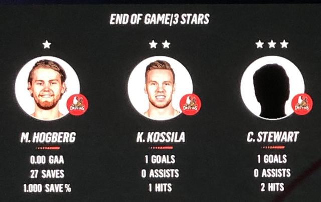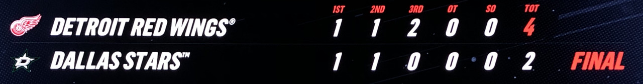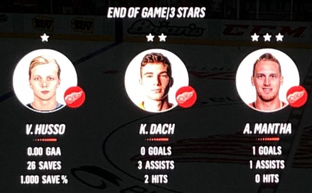 The Stars had no answers for an aggressive Red Wings defense, that only allowed the Stars to make 22 shots on net all game. Ville Husso was up to the challenge stopping everything in his path.