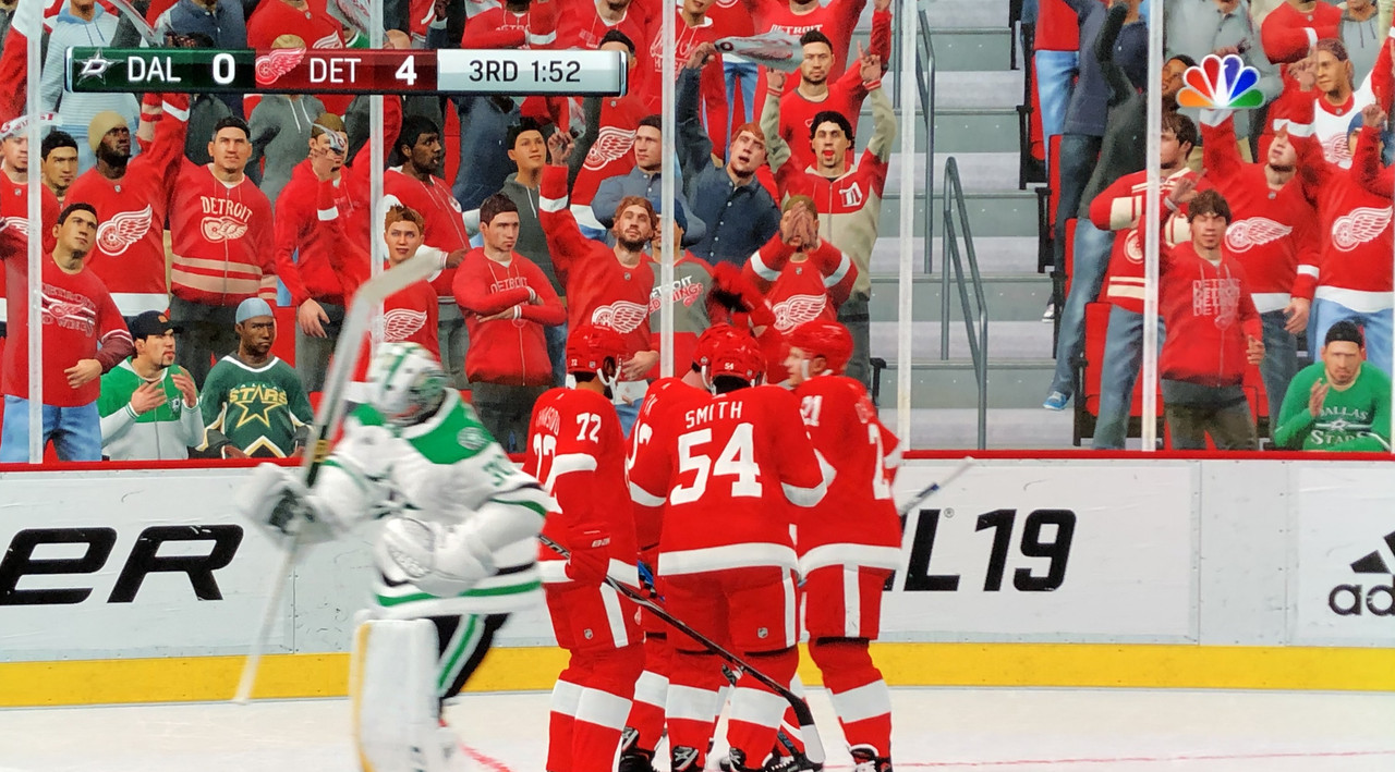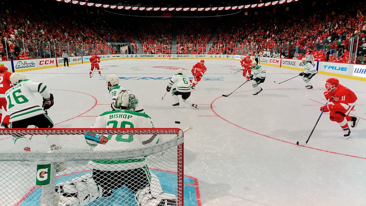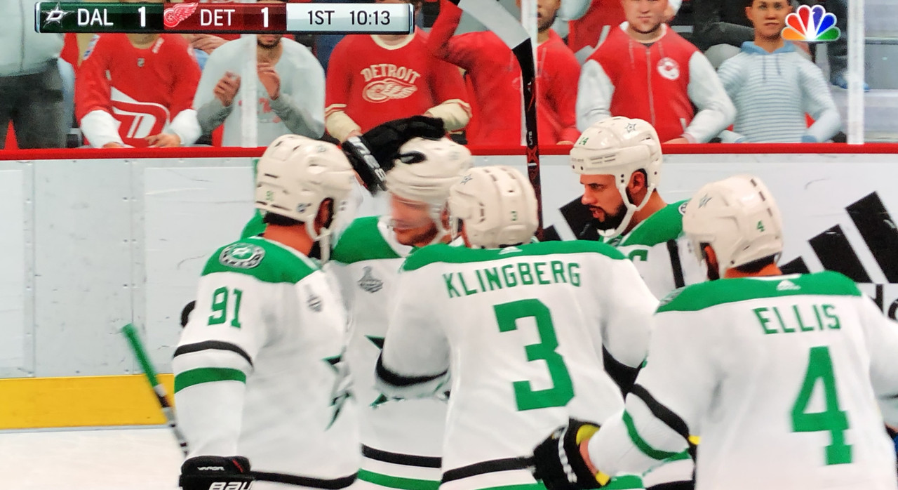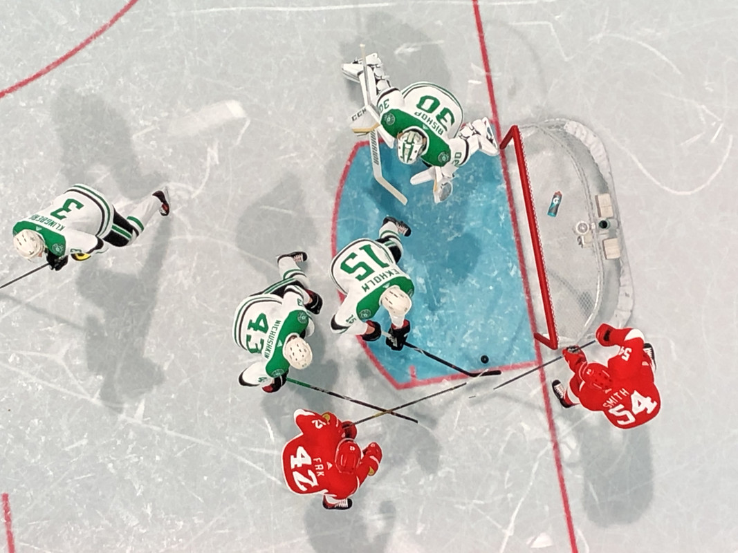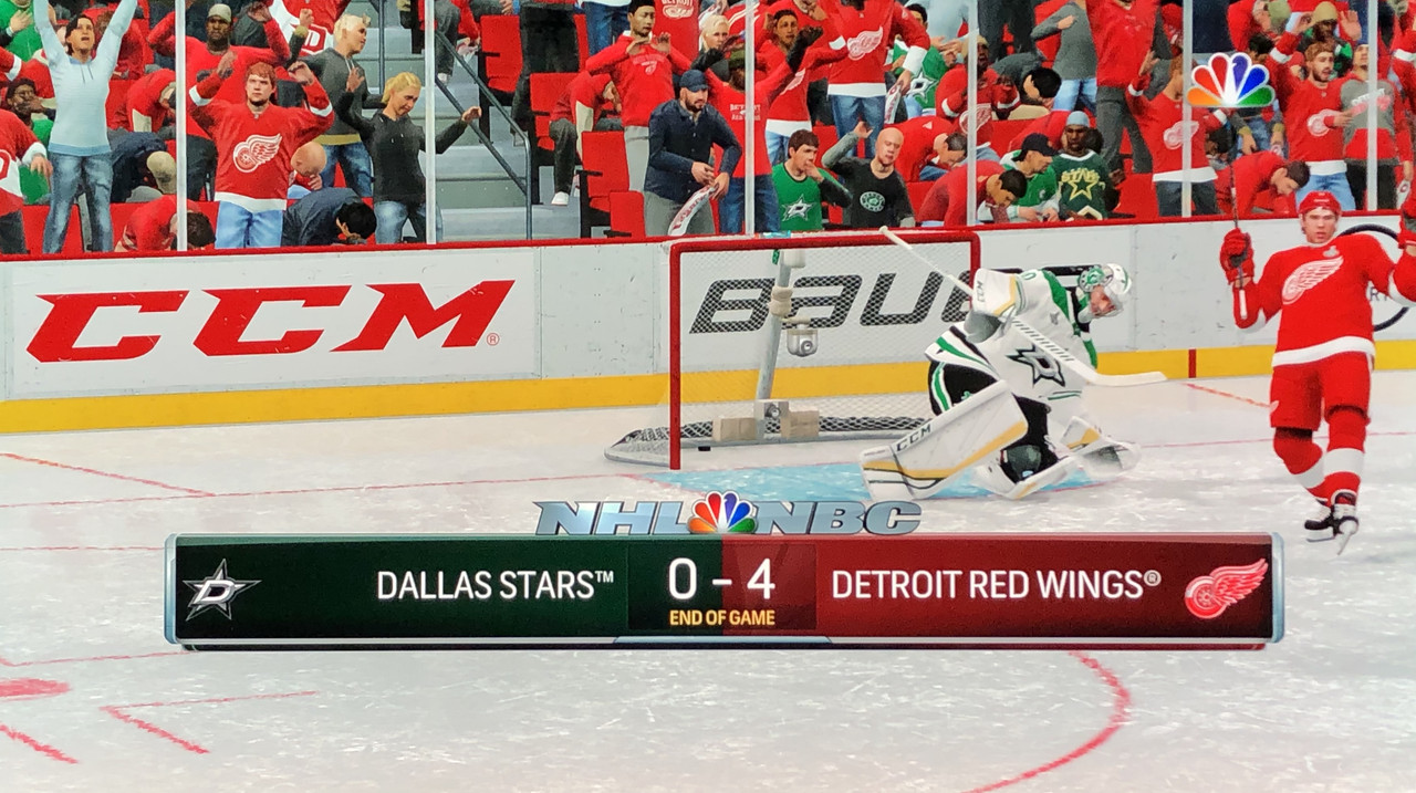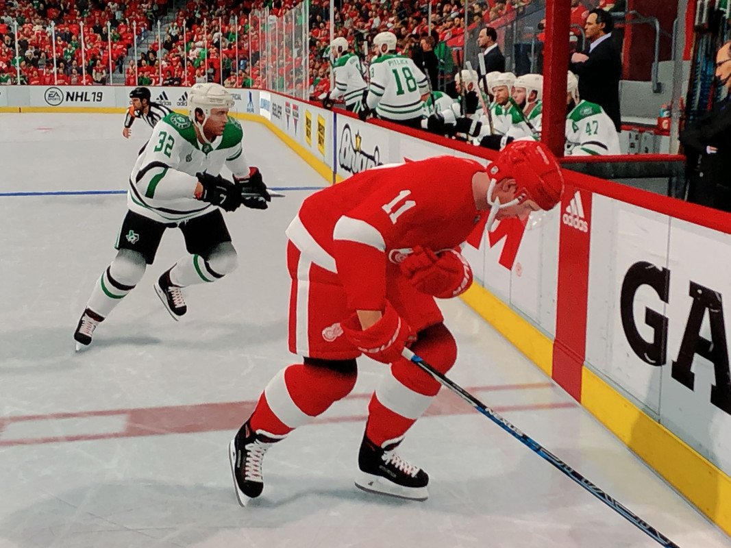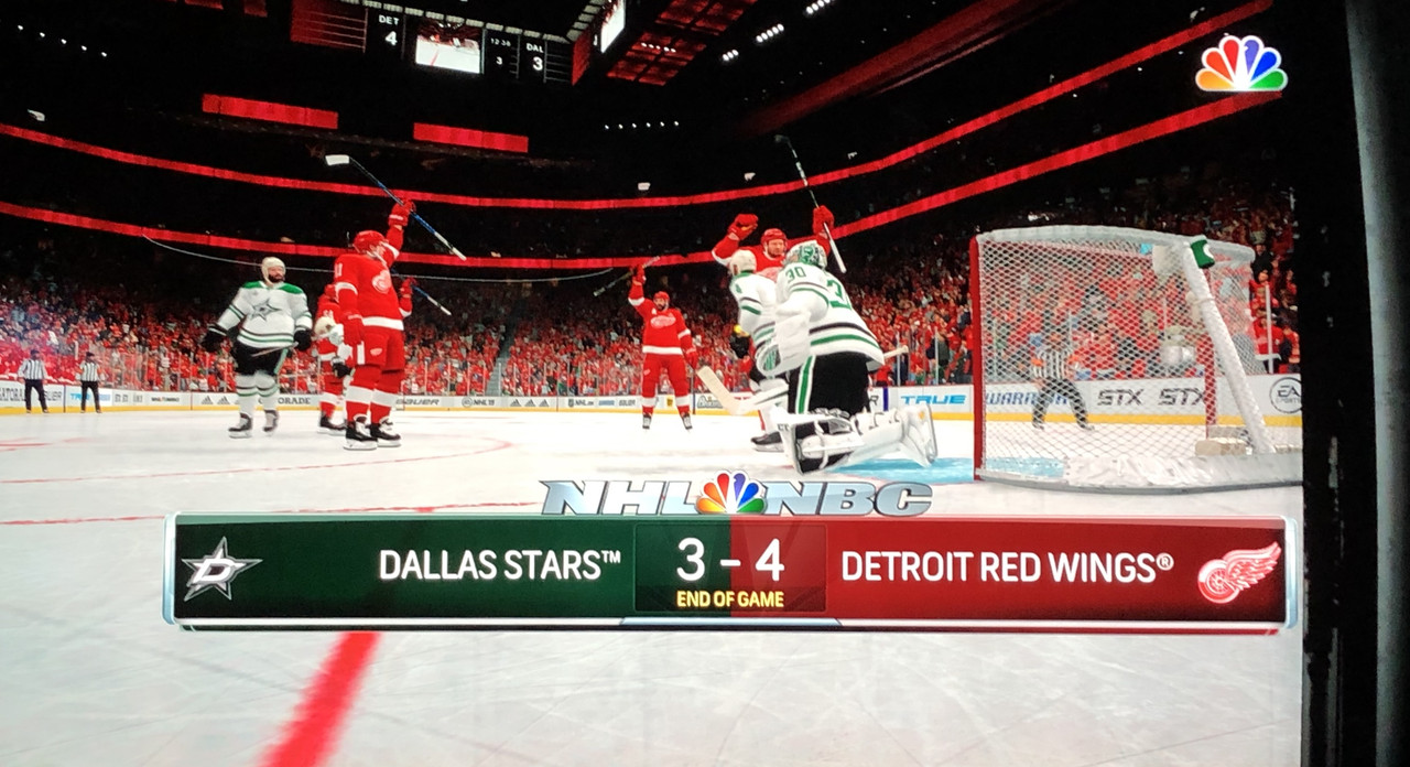 The Red Wings held their nerve with their precarious 1-0 lead intact. With only a minute to spare, the Stars pulled goalie, Ben Bishop & went on the attack.