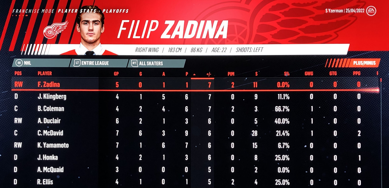 Tonight was by far Filip Zadina’s best game for the whole playoffs, however late in the last period the 22 year old winger took a hard knock near the end of the game & left the ice noticeably dazed & in pain. It will be a nervous wait for Detroit fans to see if he will be healthy for game 6.
