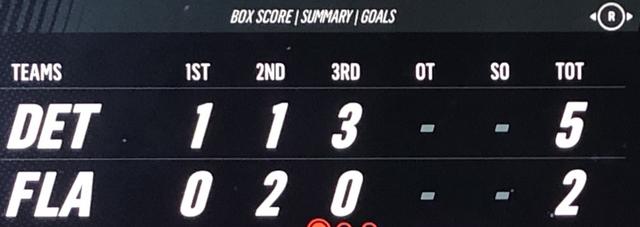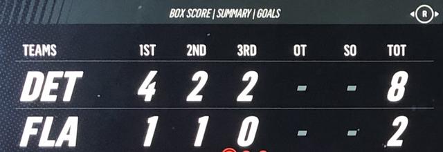 Florida started the 2nd period off well again, by scoring the 1st goal, however that too was answered by 2 more goals from the Red Wings, leaving the score 6-2 at the last break.