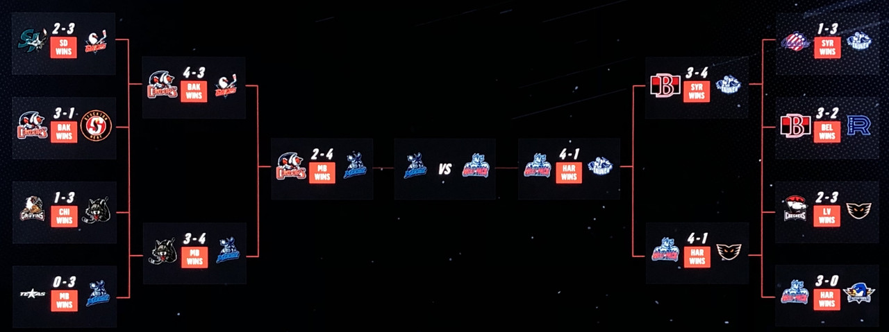 In the West – Manitoba Moose’s Cinderella run continues with a 4-2 series victory over Bakersfield. Will they have what it takes to beat a red hot Hartford?