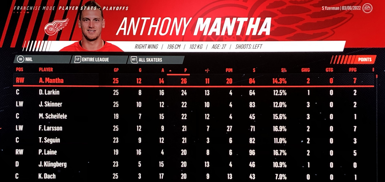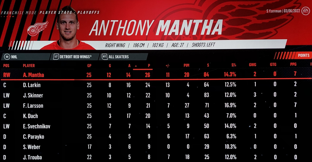 Mantha’s contribution during the playoffs & this series against Dallas has been instrumental to the Wings championship win.
