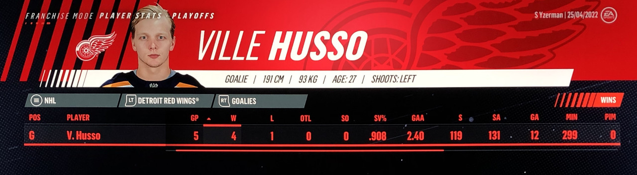 Ville Husso did not fare so well at the other end, letting in the 1st two shots on goal, which clearly rattled him, later allowing 4 more goals in a poor effort.