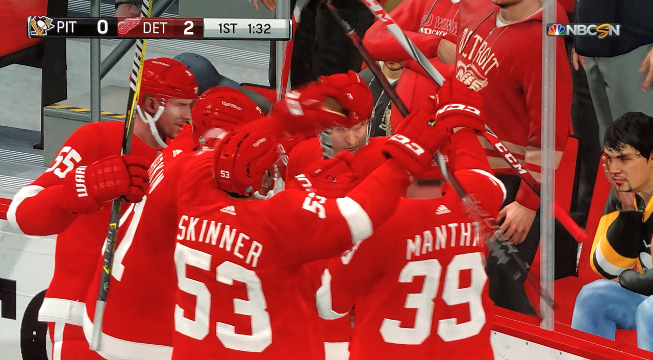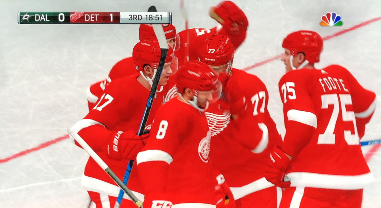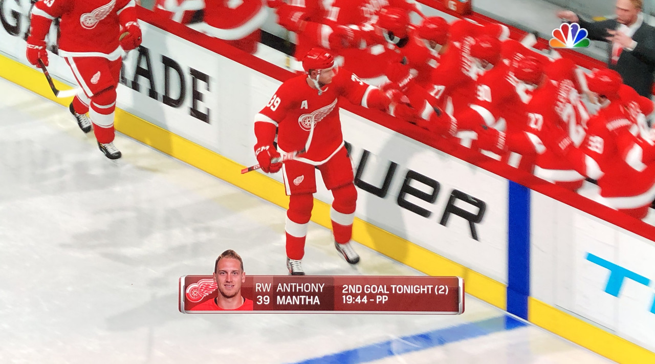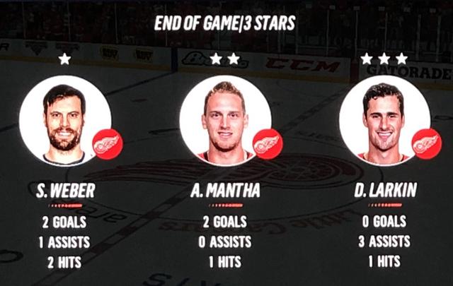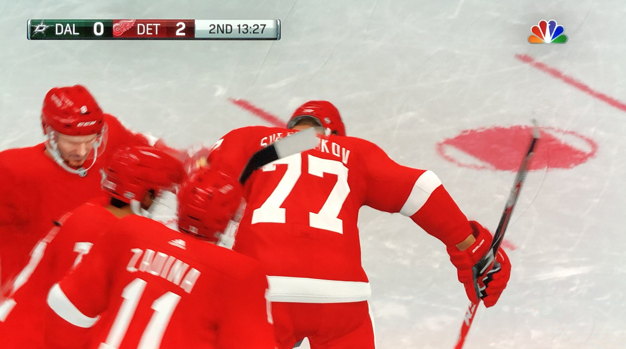 The Red Wings 2 goals came in the 1st period with Mantha & Svechnikov scoring to take a 2-0 lead into the 2nd period.