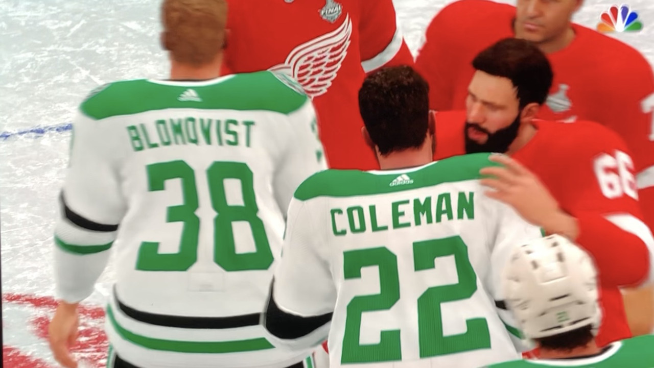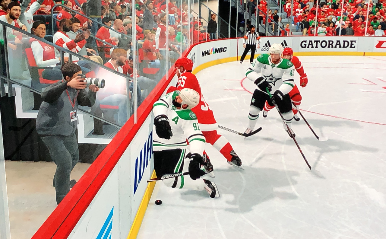 Midway through the period Stars Alternate Captain, Tyler Seguin then put his team back in front with a neat deflection that gave Wings goalie no chance at making a save, however shortly after once again, Mantha answered the call, netting a wrist shot to complete his 1st career Playoffs hat-trick, & tying the game once more at 3-3.
