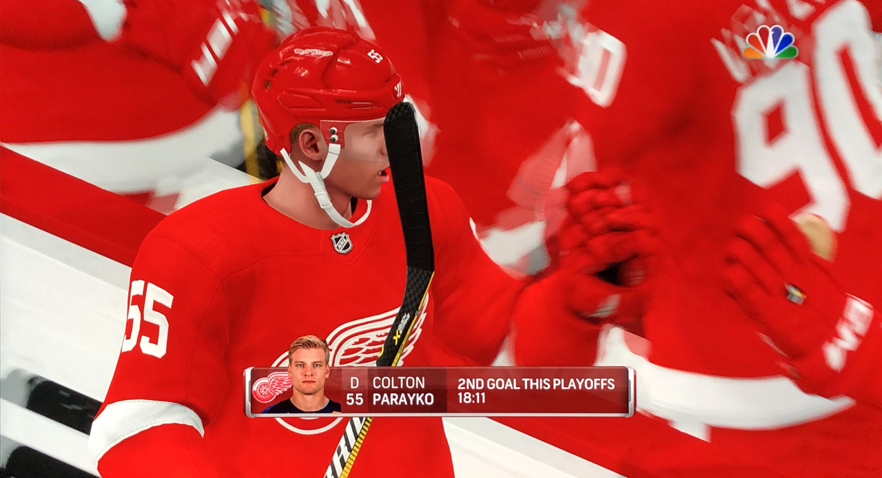 Red Wings Star defenseman, Colton Parayko scores with 1:49 remaining in the 3rd period to break the 2-2 deadlock with the Panthers. Setting in motion another 2 Detroit goals from Muzzin & Larkin (EN) in the last minute, resulting in a 5-2 Red Wings victory & an end to the series in 5 games.