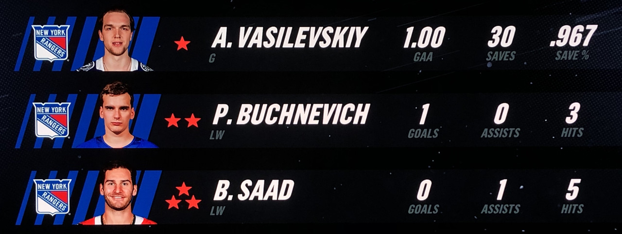 Husso finished the night with 33 saves, earning the 1st star of the game.