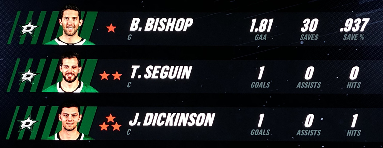 Stars Goalie Ben Bishop accumulated 29 saves, however it was a tough 3rd period.