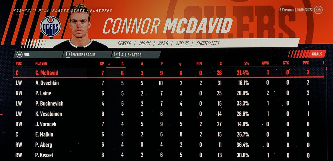 Well deserved winner of the Conn Smythe Trophy – 26 points (12g,14a) in 25 games.
