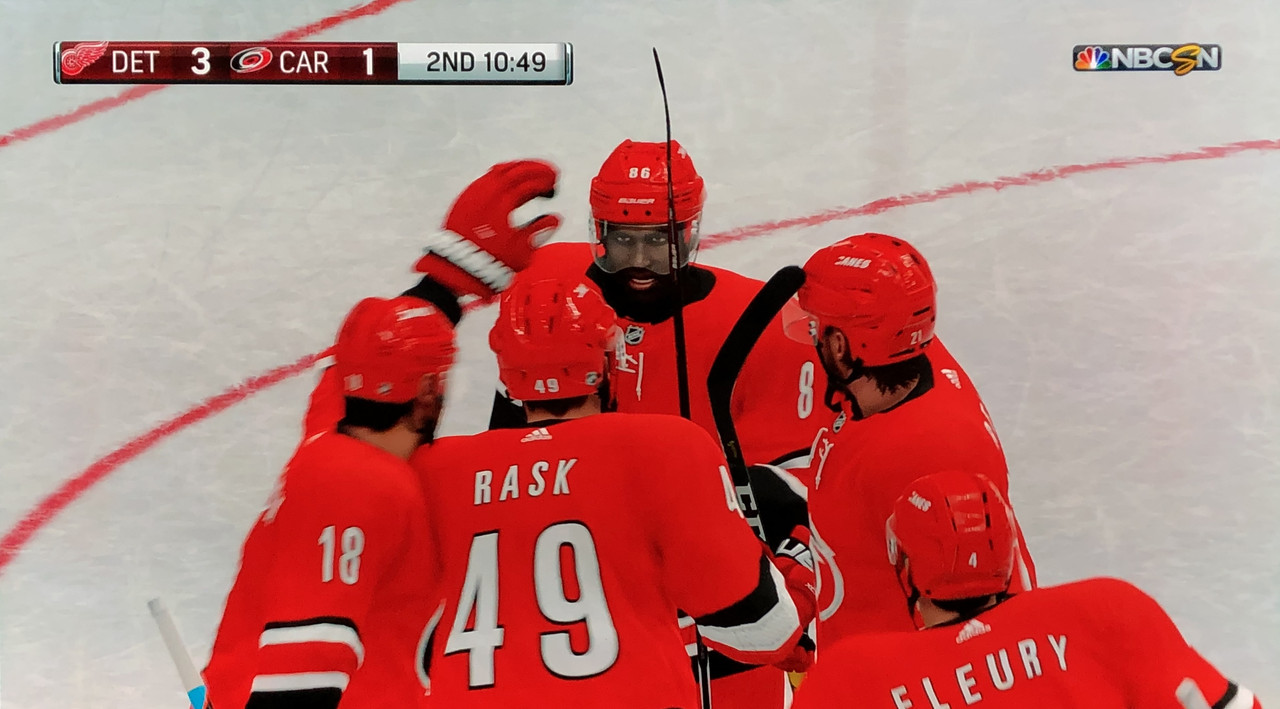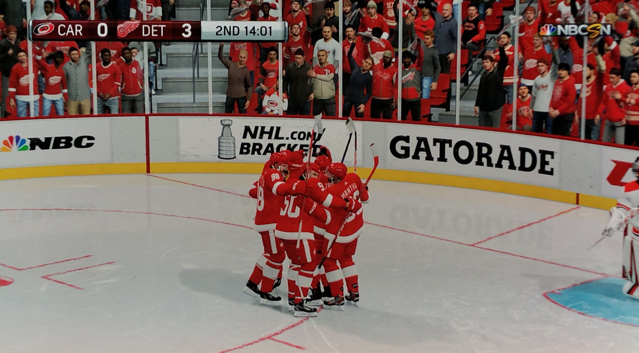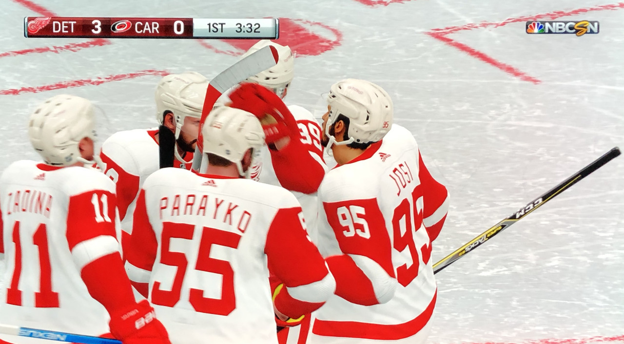 With 4:38 expired from play in the 3rd, Jeff Skinner scored the go-ahead goal to push the Red Wings in front with the score at 3-2.