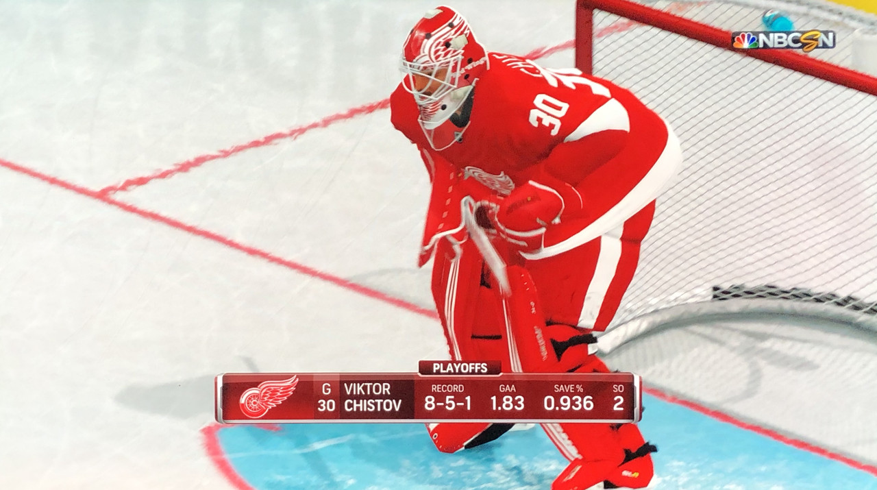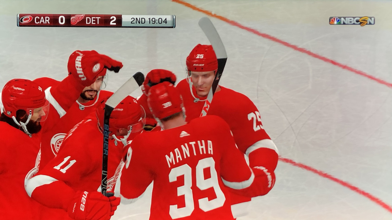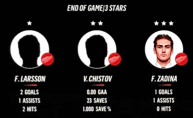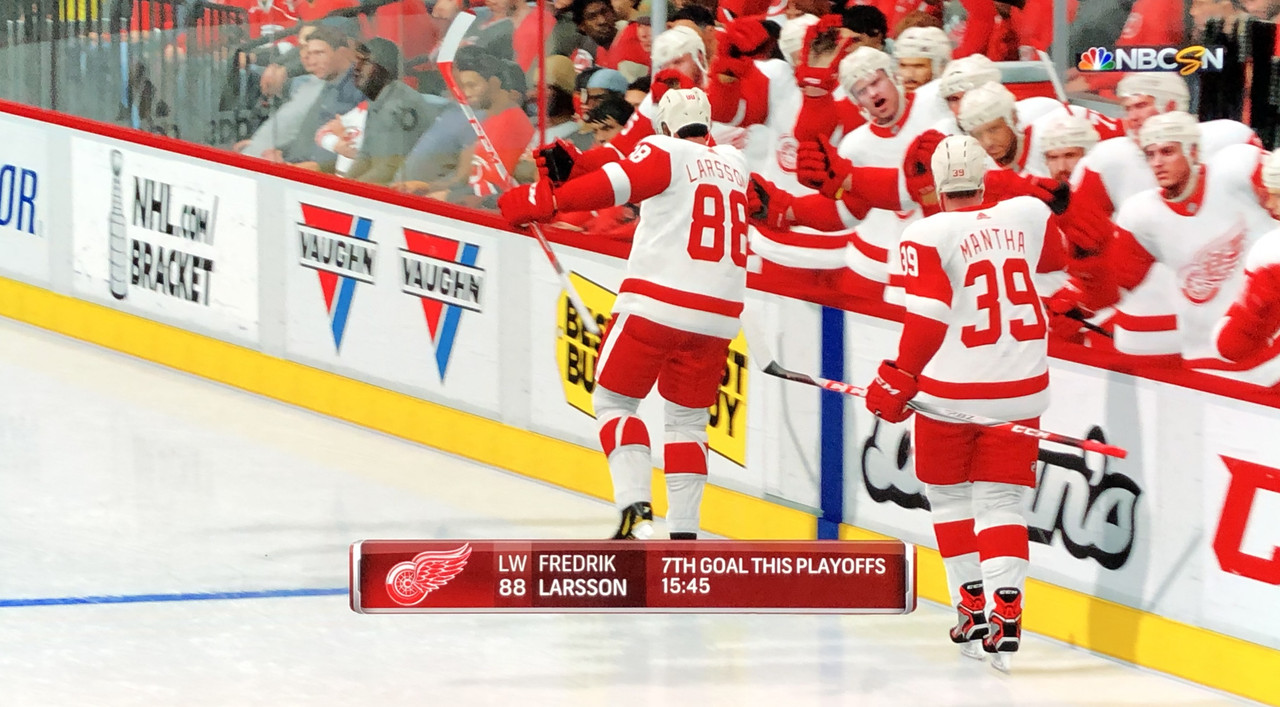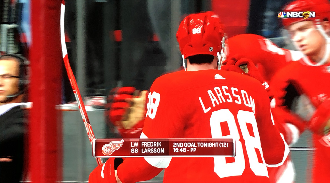 The Red Wings tried something different with Fredrik Larsson tonight, playing him on the 1st line in Center & after some awkward plays, the move paid off with the talented forward adding his 1st for this series with 45 seconds remaining in the 2nd, giving the Red Wings a 3-0 lead.