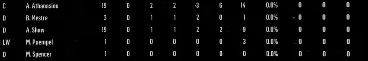The Canes were able to pull the lead back by 1 during the 2nd period when Beau Barnaby scored from a one-timer triggered from a perfect pass by Victor Rask. However that would be the Canes only goal for the game.