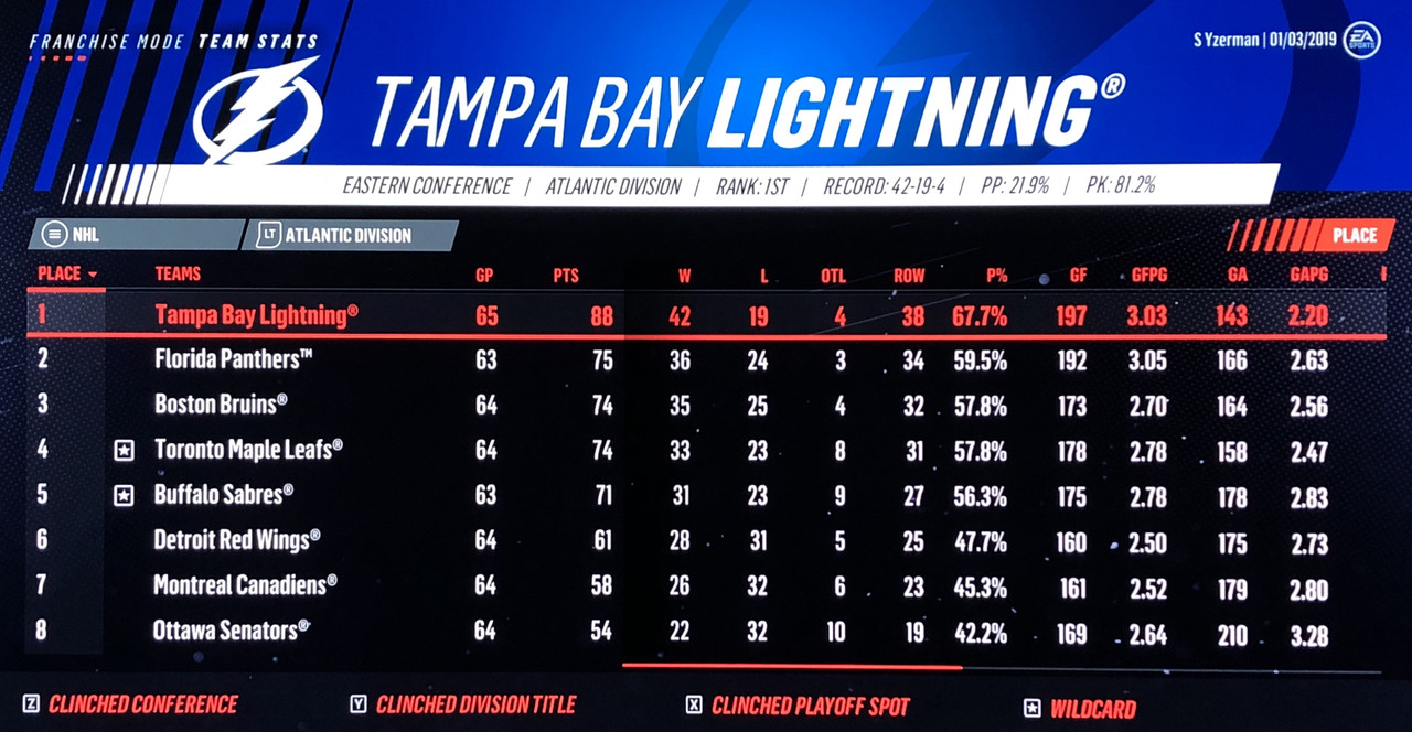 The Red Wings record now stands at 28-27-3. They sit 6th in the Atlantic, they are 6 points behind Buffalo who are in a Wild Card spot and they are 8 points clear of Ottawa in 7th.