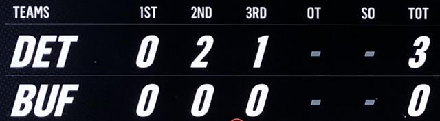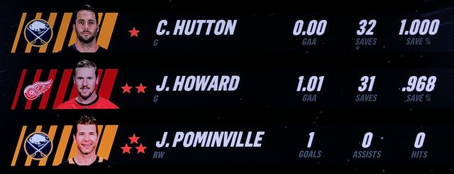 Jimmy Howard put in a solid game, making 31 saves, however the Wings’ skaters were not able to beat Buffalo Goalie Carter Hutton who records a brilliant shutout.