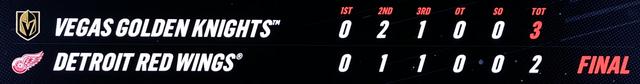 Vegas comes to town and steals one away from the Red Wings, dealing out a 3-2 loss.