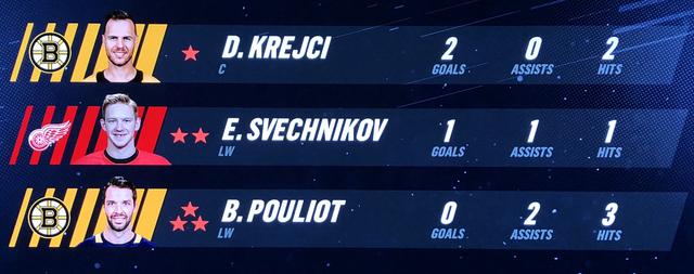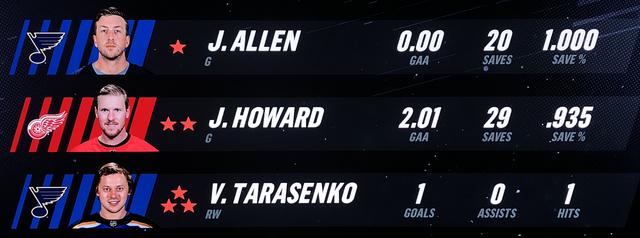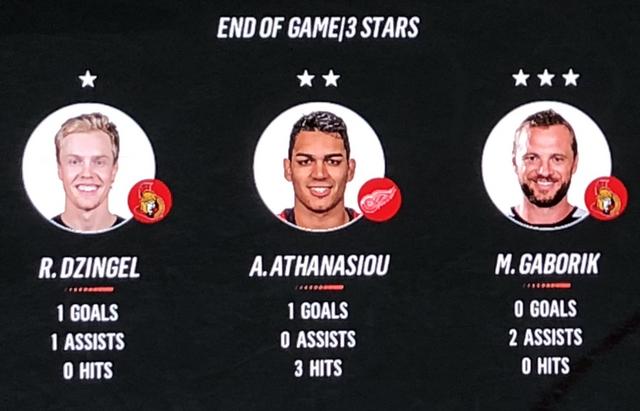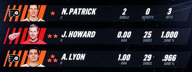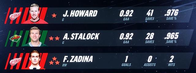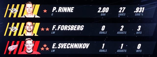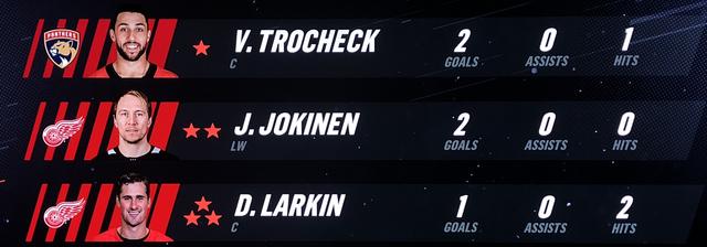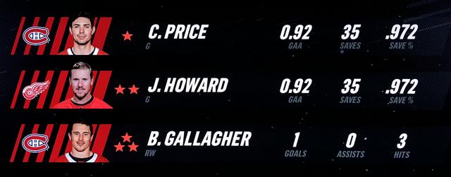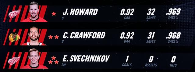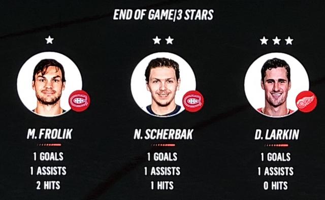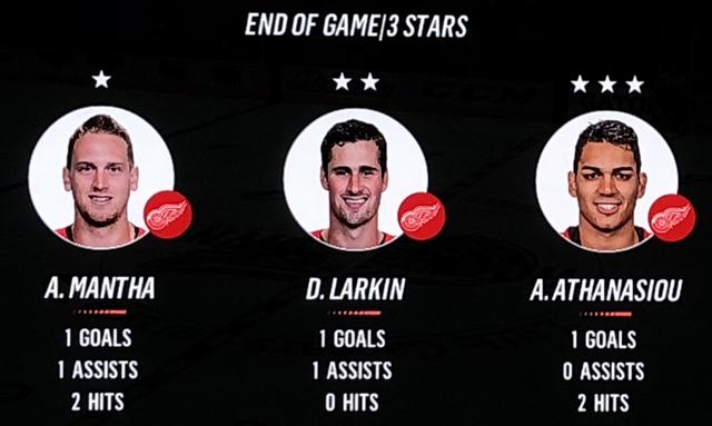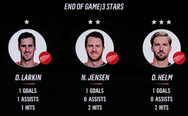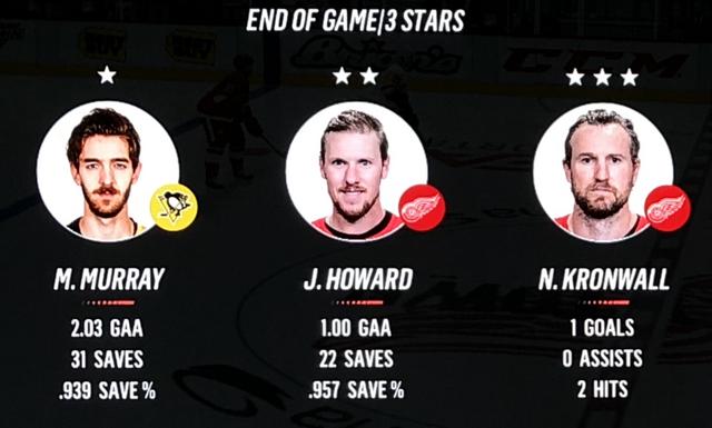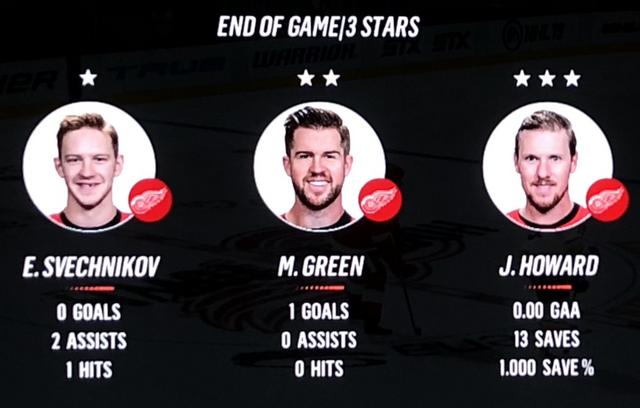 The visitors really struggled to get an offence going, only putting 13 shots on net, which Jimmy Howard was able to shut down, earning him the 3rd star of the game.