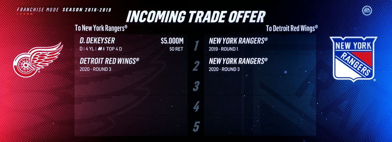 Red Wings receive 2019 1st Round Pick, plus swap 2020 3rd Round Picks as Rangers Roll Dice