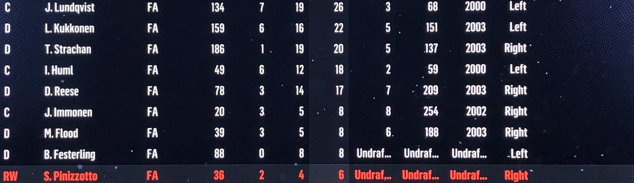 The big drive I feel will be to look for at least one more veteran D-man in free agency, possibly 2 if Kronwall retires. In the forward lines, I will more focused on giving younger skaters yet more ice time to develop. I also believe we have an oversupply of 3rd – 4th line wingmen that we will look at perhaps making a change or 2 to balance out.