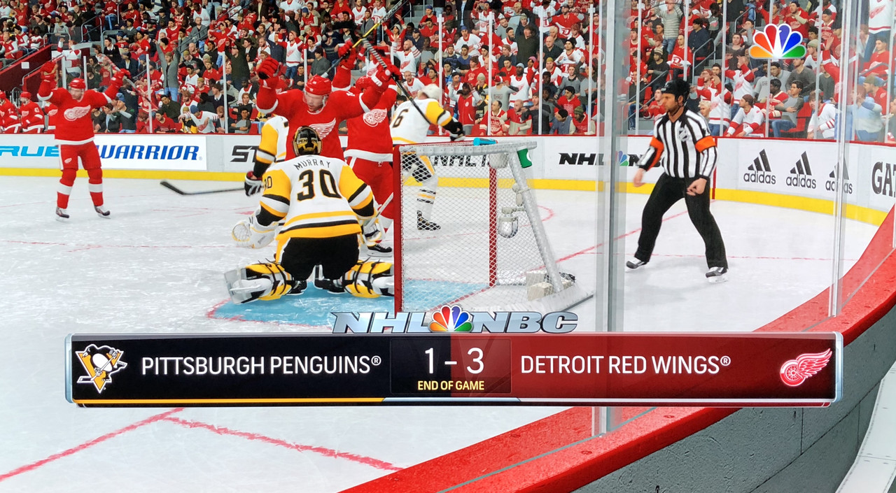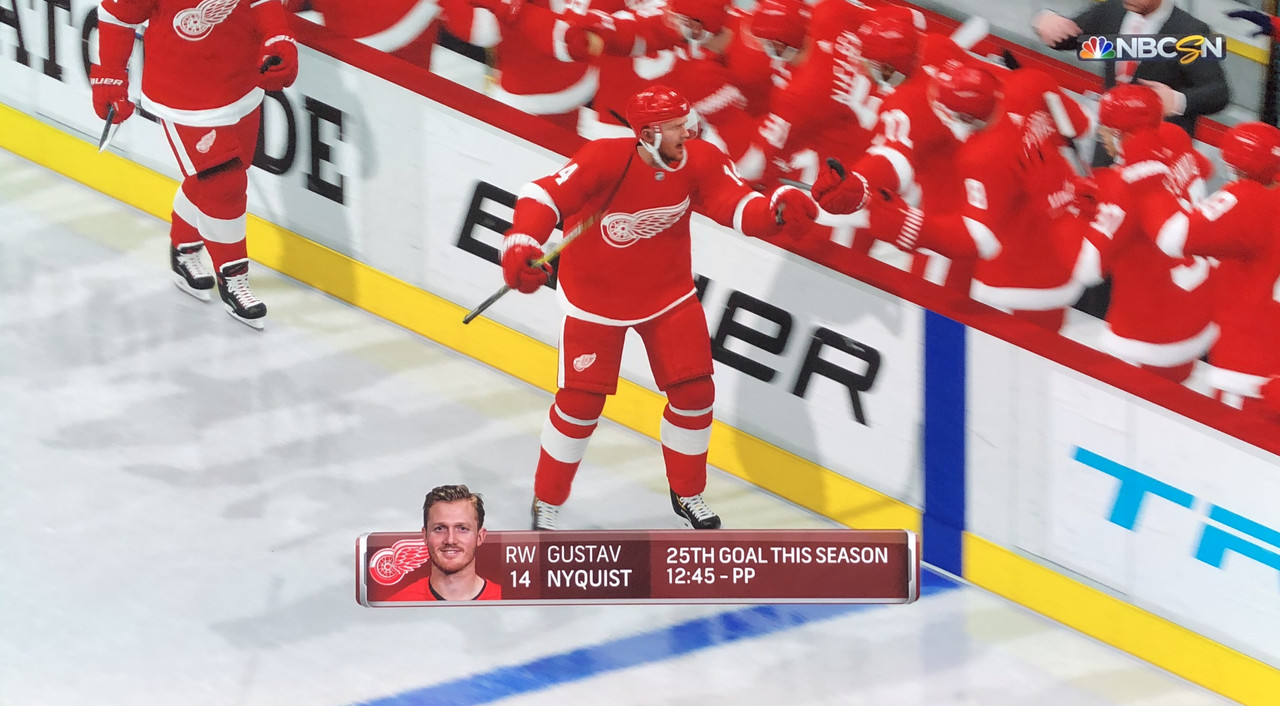 The Red Wings maintained control most of the game & finally in the 3rd period, Gustav Nyquist scored a scrappy goal in traffic in front of the net to give the Red Wings their 3rd & final goal for the game & for the season.