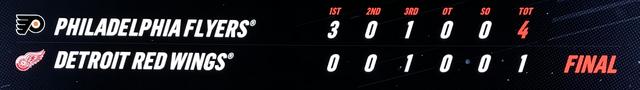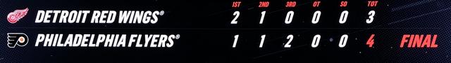 Despite the Red Wings leading leading for most of the game, 2 quickfire Flyers goals has turned the result on its head, handing the Red Wings a 4-3 loss.