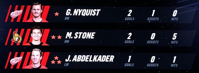 Gustav Nyquist nets 2 to help the Red Wings in their way to a 4-3 victory over the Senators.