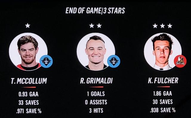 The rest of regulation time would go without further score and it was not until 29 seconds remaining in overtime, that Admiral’s forward, Rocco Grimaldi, netted a relatively easy one with Kaden Fulcher camped way too far out of his net.