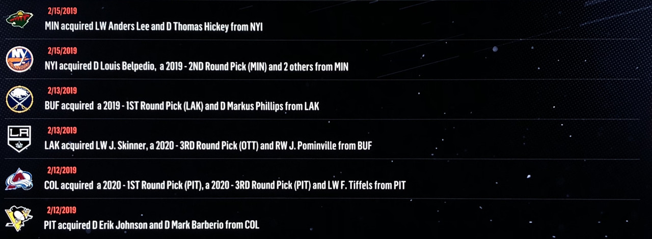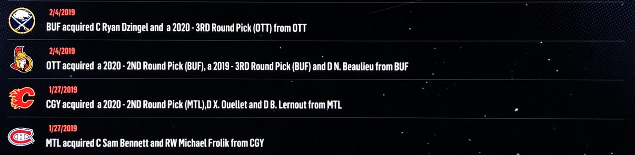 In trade news - directly after the game it was announced Ottawa Centerman Ryan Dzingel, has been traded to Buffalo for Defenseman Nathan Beaulieu plus picks.