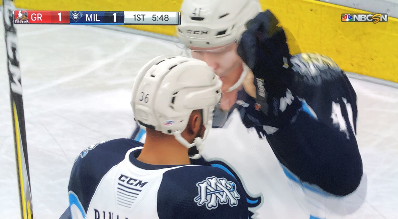 Each team’s goalies had a busy night & both were in excellent form. Griffins goalie Kaden Fulcher making 30 saves & former Red Wings / Griffins product, Tom McCollum of Milwaukee making 33 saves, which earned him the 1st star of the game.