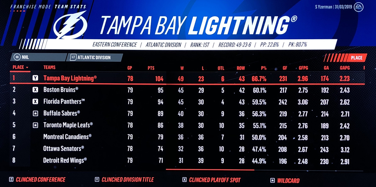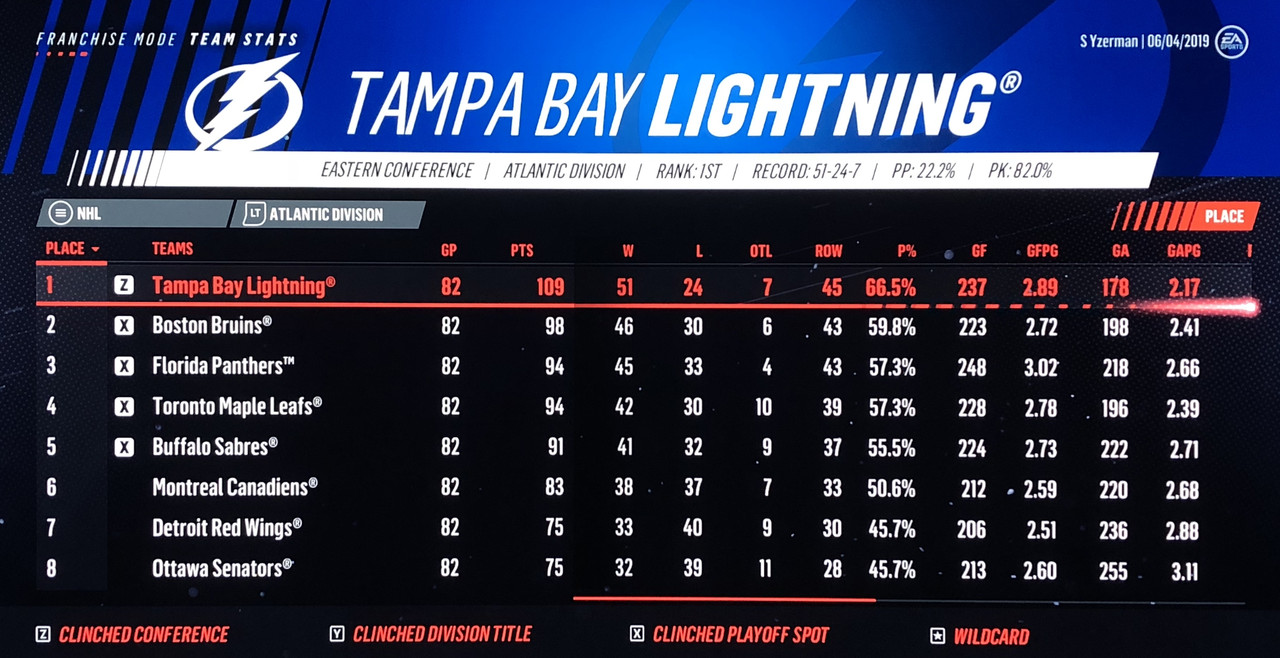 Lightning won the series 4-0 against Buffalo. They were the only team in round 1 to sweep their opponents.