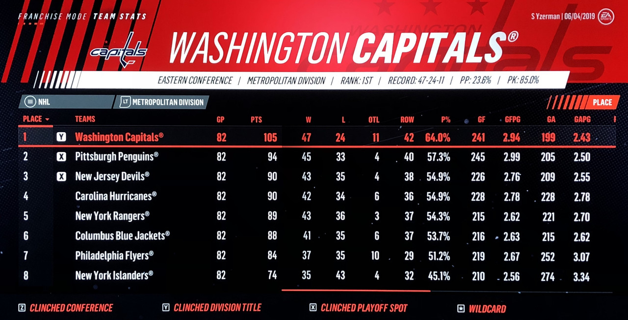 Reliant on New York losing, if New Jersey win against Florida, they qualify automatically. Carolina are behind New Jersey on overall wins. They can only qualify if they win their game against Philadelphia & both New York & New Jersey must lose their games.