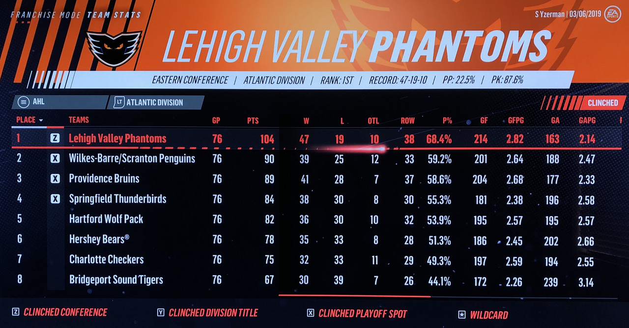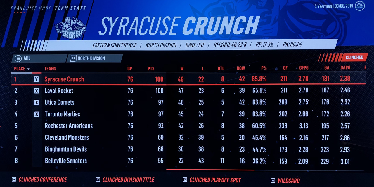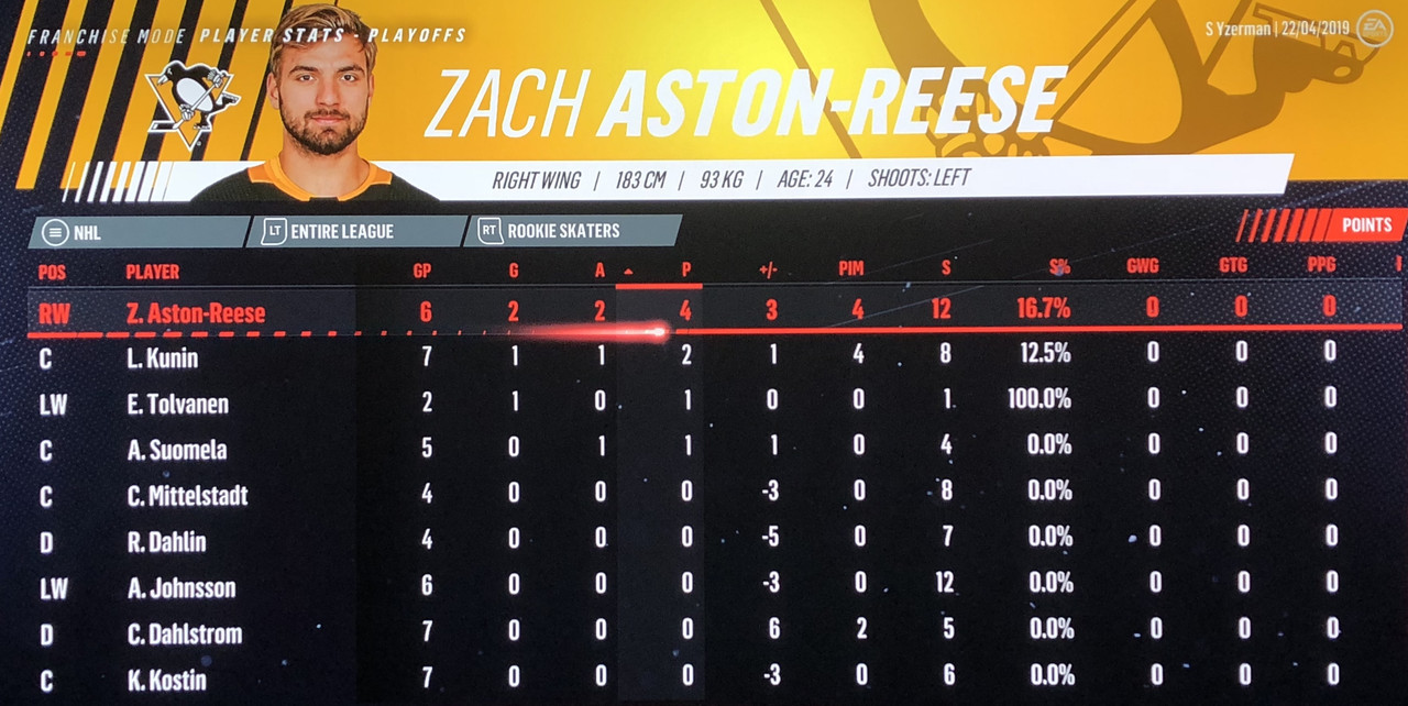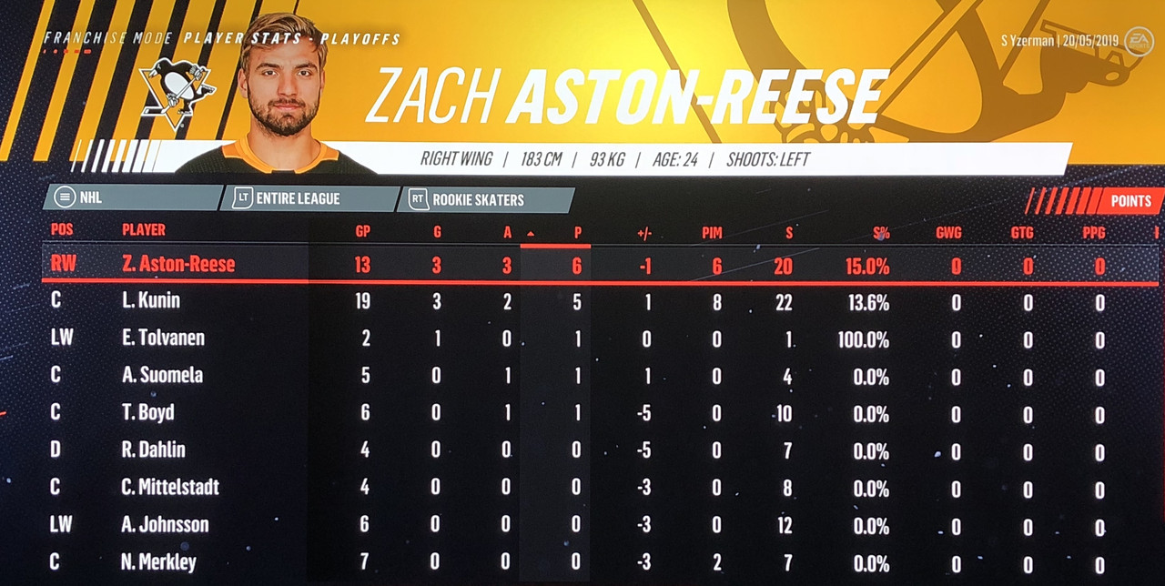 The Griffins season almost recovered after a very average start. Goalie Harri Sateri returned from his Red Wings duties, sparking a notable comeback with the Griffins as they surged into the Central division's top 4 by the end of February. Unfortunately Sateri then broke his ankle, ending his season and ending the Griffins run of good fortune.