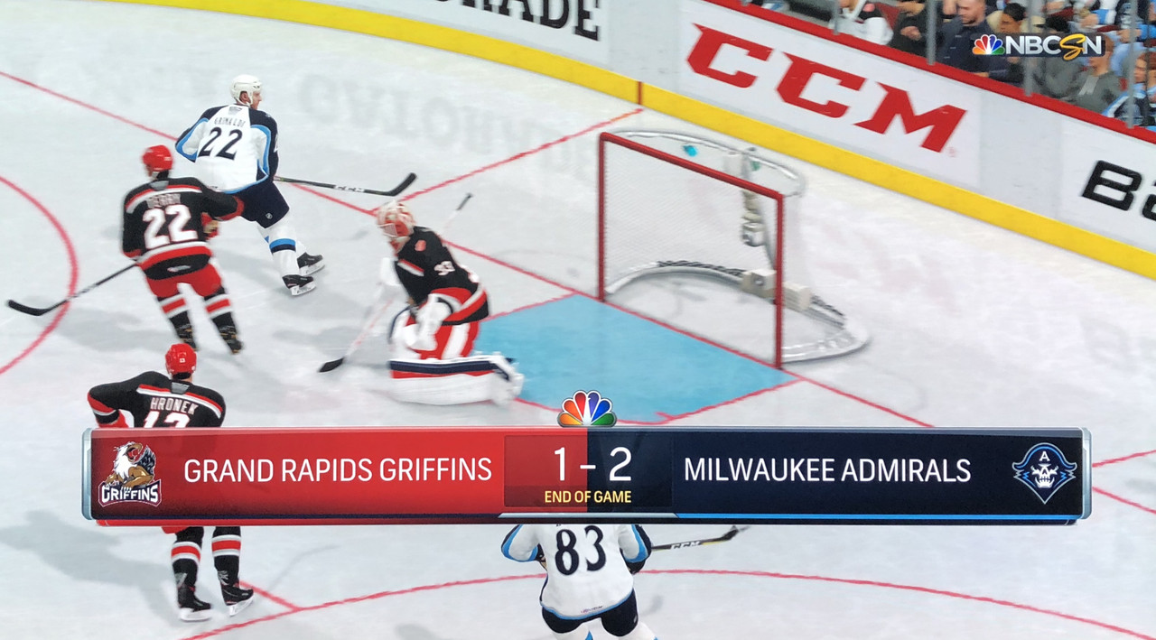 The Griffins lose a nail biter, 2-1 in overtime to the Milwaukee Admirals.