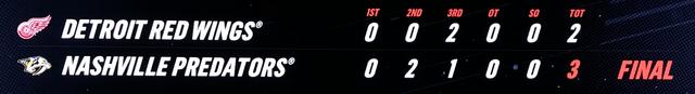 The Red Wings rallied later but to no avail, going down 3-2 to the Nashville Predators on the road.