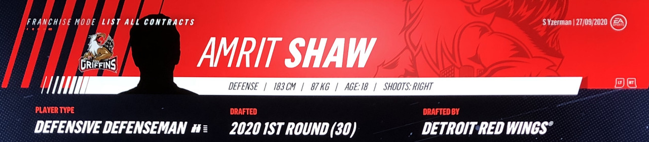By securing pick #30 it is expected that the Red Wings have made the move to select highly touted defenseman prospect, Amrit Shaw.