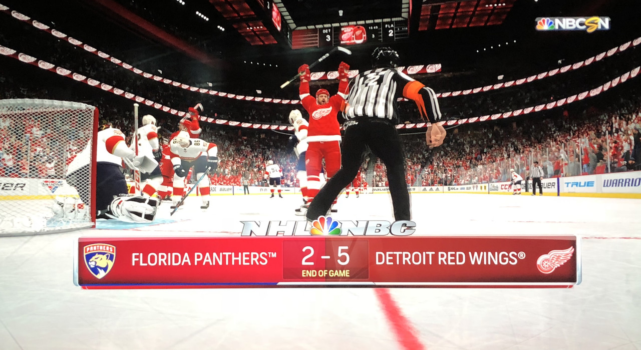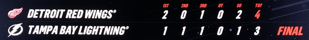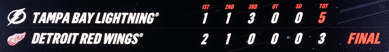 Tampa Bay hands the Red Wings their 1st loss at home, with a final score 5-3 to the visitors.