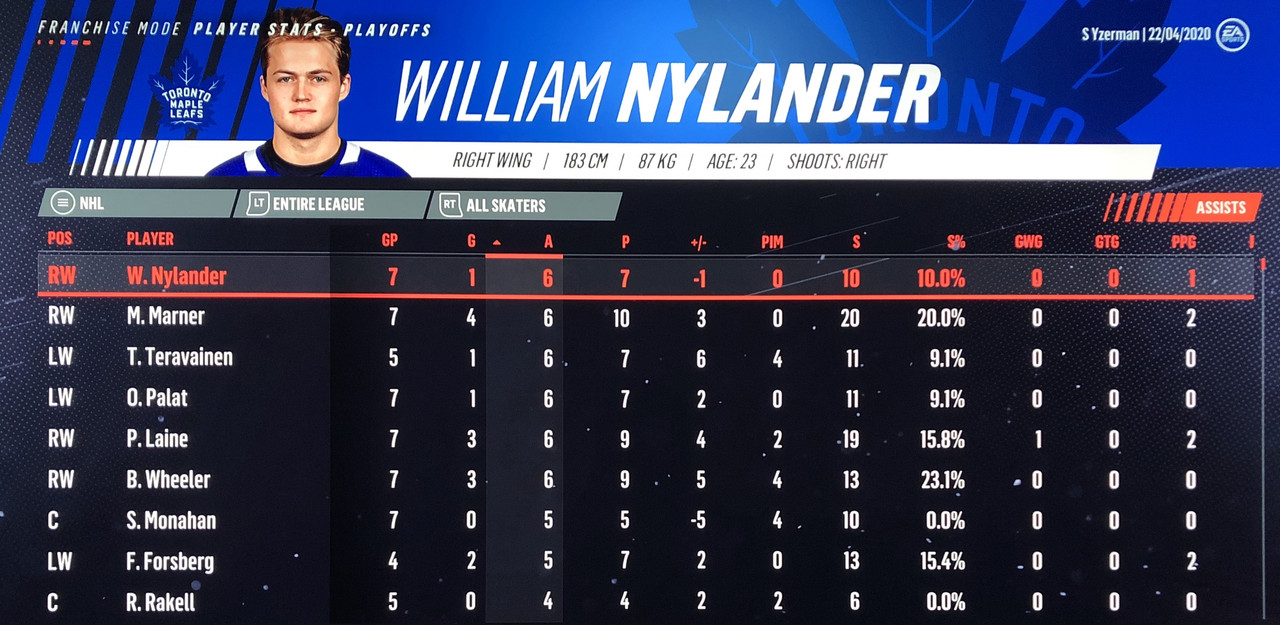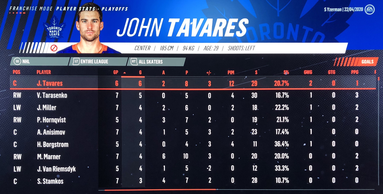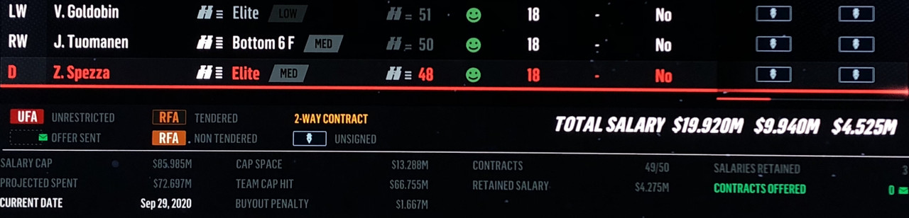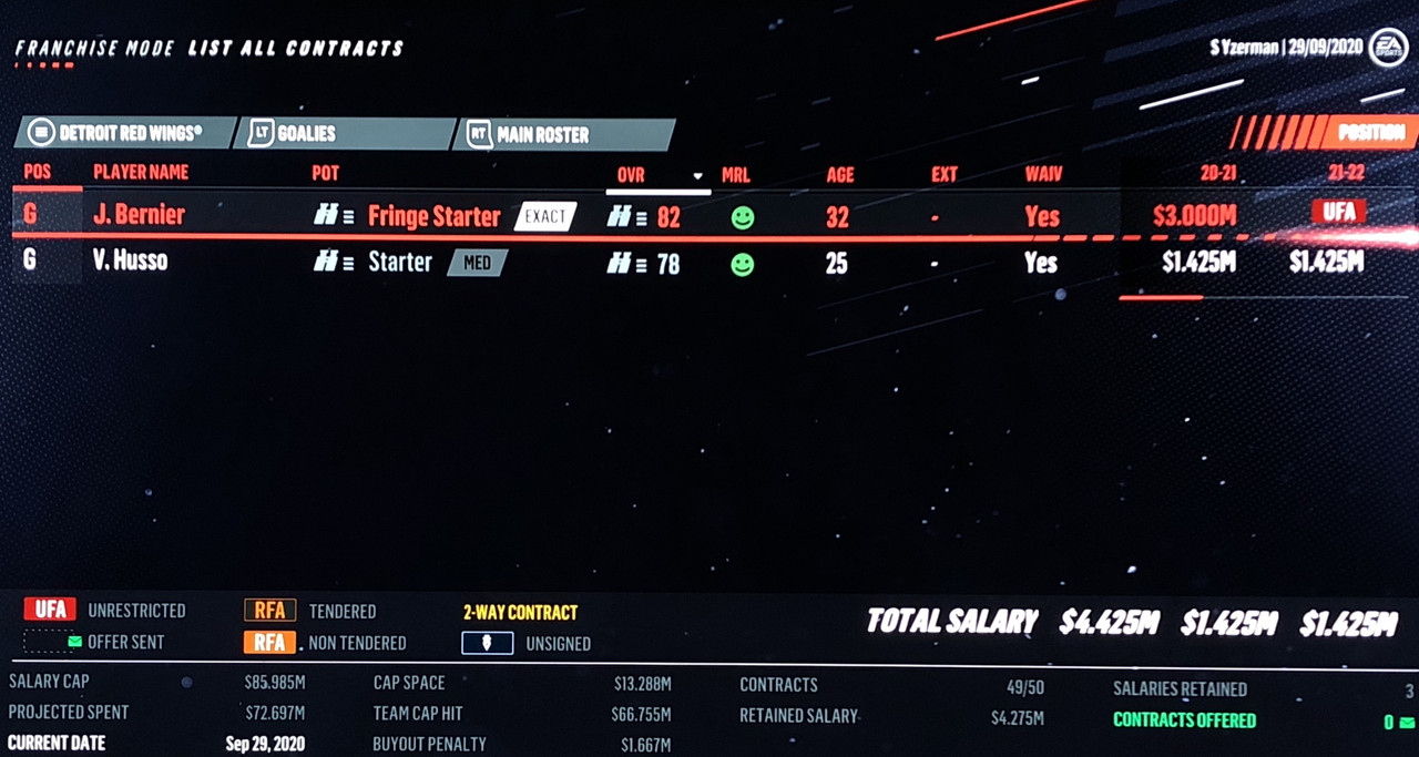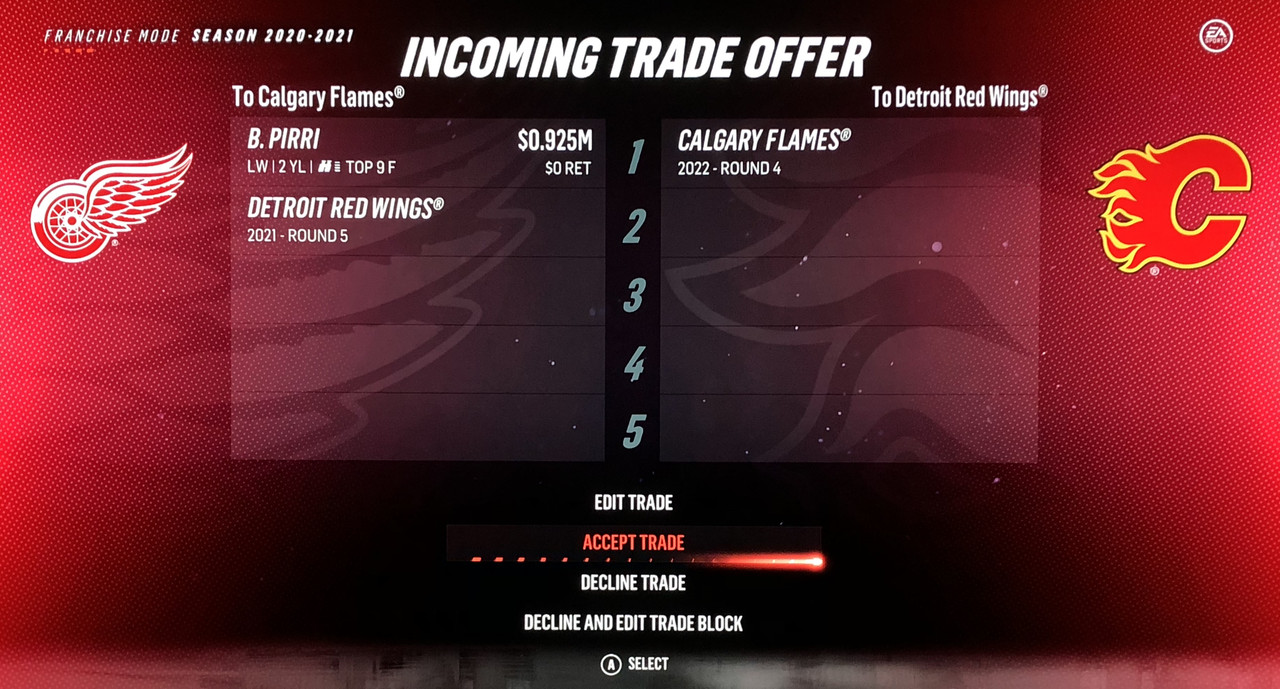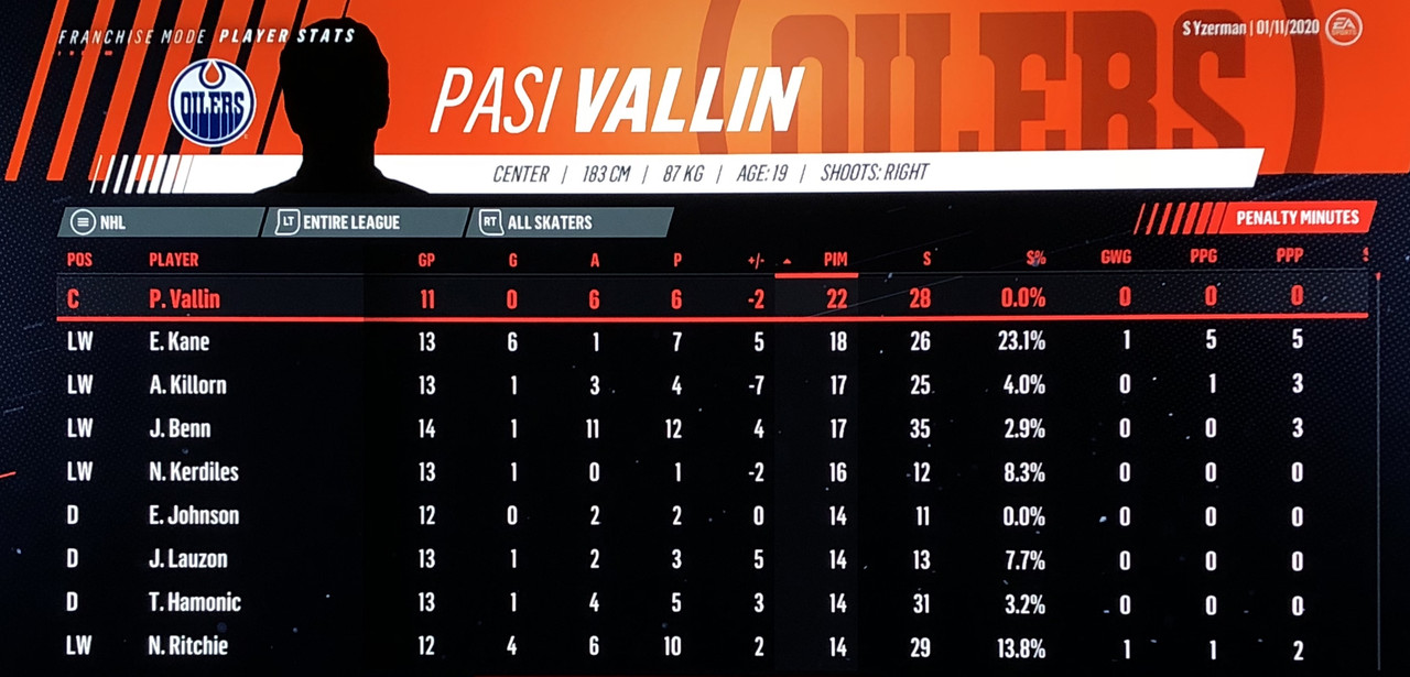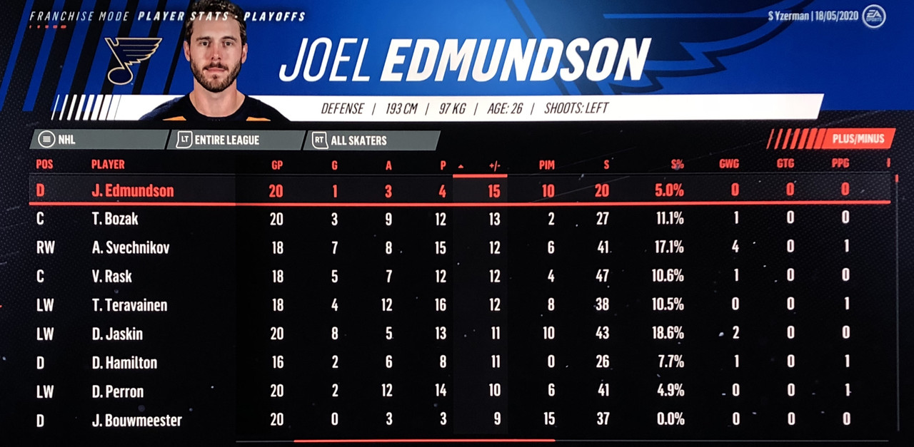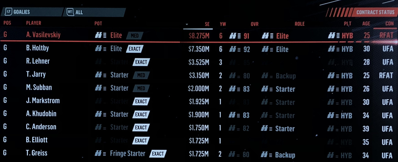 If we keep winning, my thoughts are to trade early, say around November or December. The 2 regular roster guys I have in mind are Andreas Athanasiou (which sucks because I’m a huge fan in real life) &/or Alex Edler, both of whom could make up the lion share of a deal & I think the team would still have the depth to cover the loss of them.